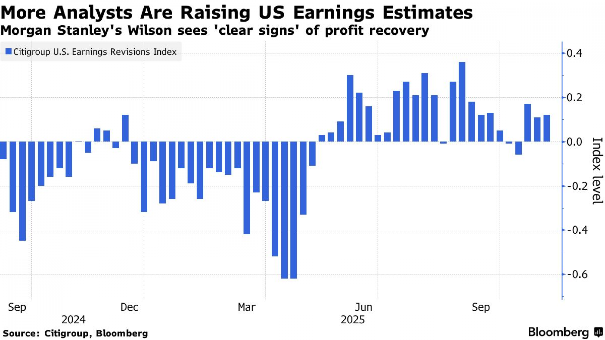 Indeks Citigroup Inc. pokazuje da je više analitičara povećalo nego smanjilo procjene od sredine oktobra. Sada je fokus na rezultatima Nvidia Corp., koji se očekuju iduće sedmice, kako bi se dobili pokazatelji trendova u umjetnoj inteligenciji.