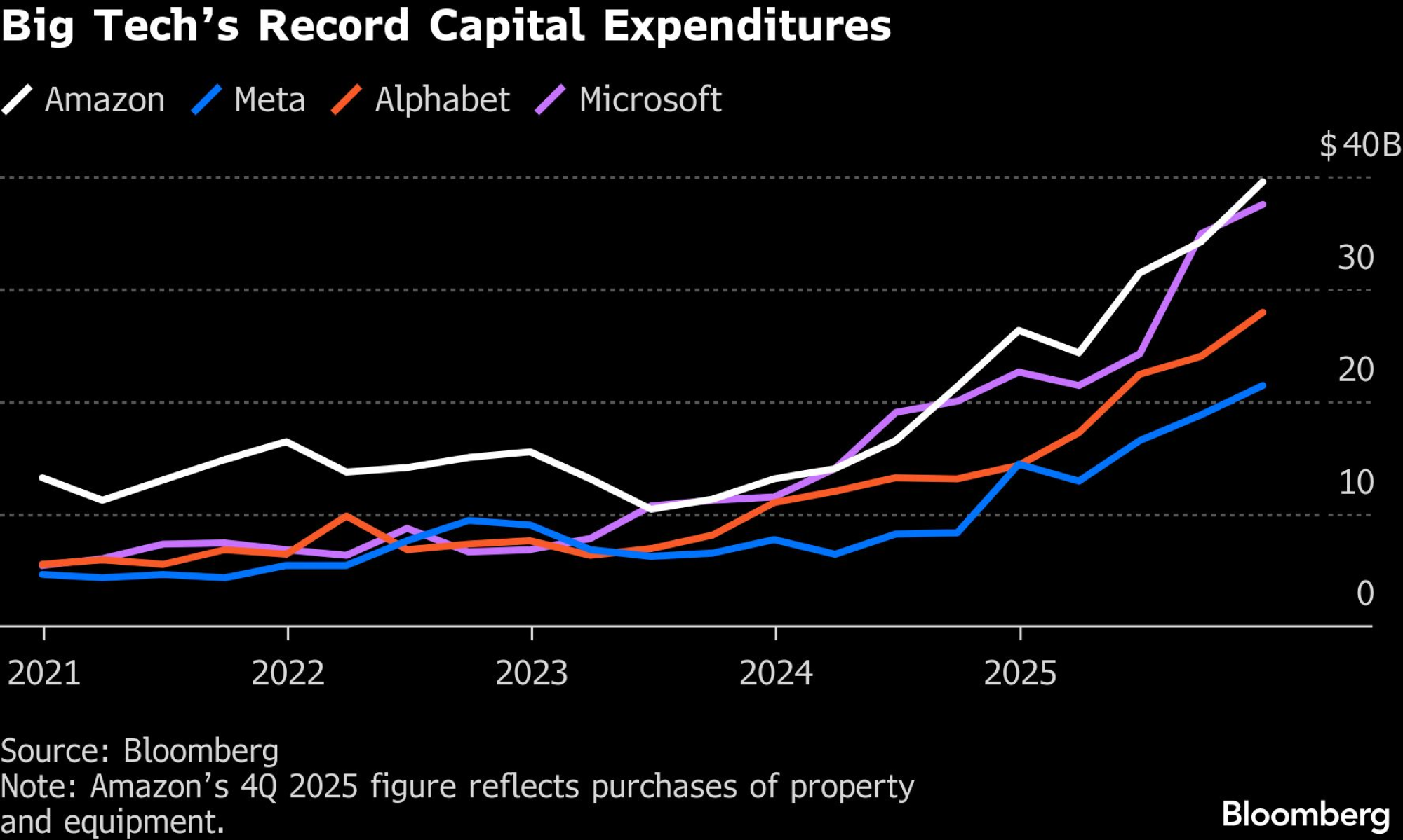 Prošle nedjelje Meta je saopštila da će njena kapitalna ulaganja za cijelu godinu porasti na čak 135 milijardi dolara, što bi predstavljalo potencijalni rast od oko 87 odsto. Microsoft je istog dana objavio povećanje kapitalnih ulaganja od 66 odsto u drugom kvartalu, nadmašivši očekivanja analitičara, koji predviđaju da će kompanija za fiskalnu godinu koja se završava u junu potrošiti skoro 105 milijardi dolara na kapitalne izdatke. Ove vijesti prouzrokovale su drugi najveći pad vrijednosti akcije u jednom danu.