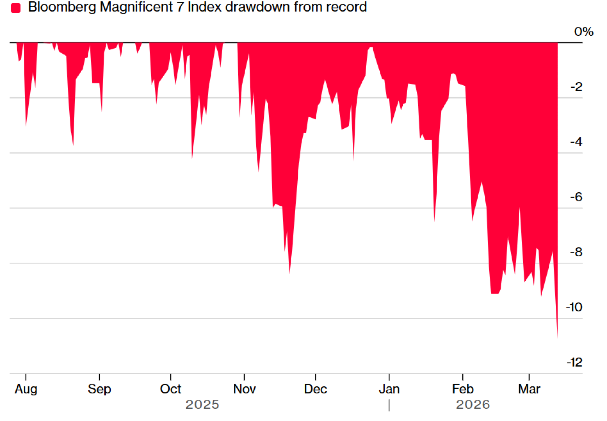 Veličanstvenih sedam u korekciji zbog rizika AI i rata sa Iranom