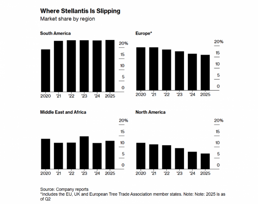 U veljači, tijekom sastanka ulagača radi ocjene godišnjih rezultata Stellantisa, Elkann je odbio odgovoriti na pitanje jednog analitičara koji ga je pitao je li voljan razmotriti razdvajanje društva s obzirom na neujednačenu globalnu zastupljenost električnih vozila i sve veće geopolitičke napetosti. Dodao je da je društvu Toyota Motor i drugim društvima tržišni udio porastao upravo zbog njihova globalnog dosega, a ne unatoč njemu. "Vjerujem da smo itekako spremni za budućnost zahvaljujući svojim regionalnim i globalnim dosezima". (Elkann i Tavares odbili su razgovarati s Bloomberg Businessweekom za ovaj članak.)