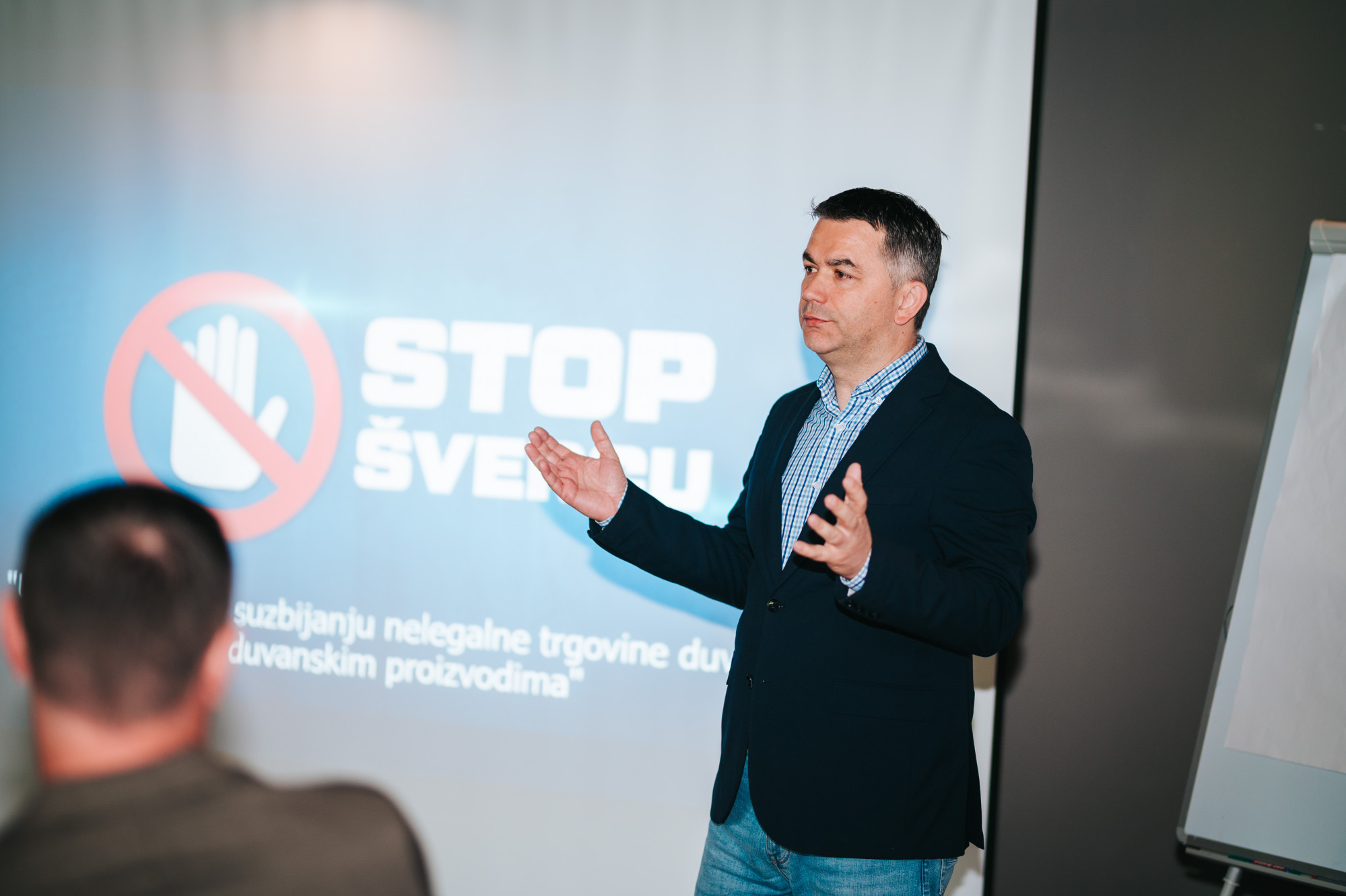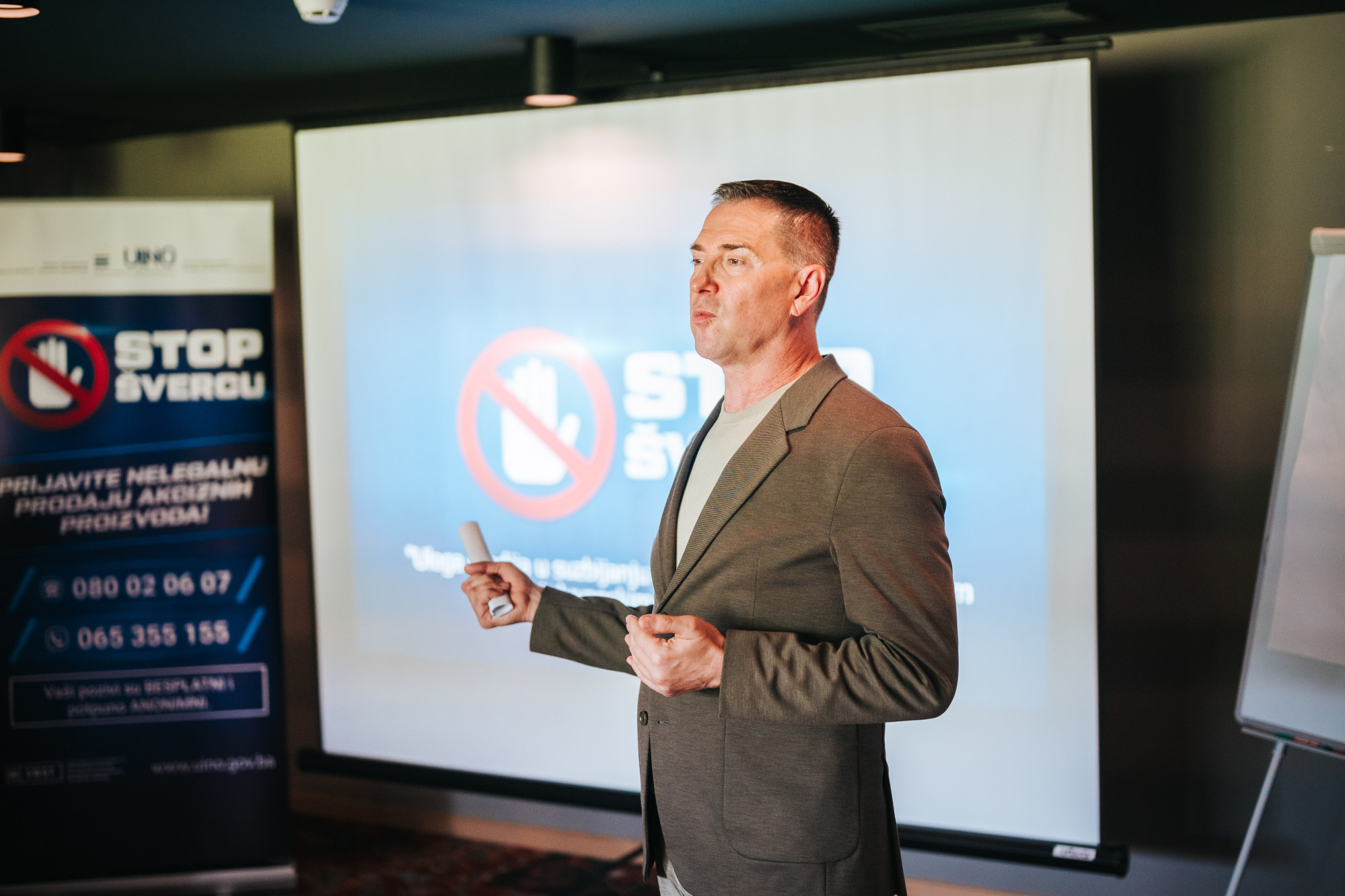 Saša Grabovac, izvršni direktor u Udruženju ekonomista SWOT, ističe da su mediji važna karika u borbi protiv ilegalne trgovine cigaretama i duvanom te da u saradnji s UIO i predstavnicima duvanske industrije već šestu godinu provode akciju Stop švercu.