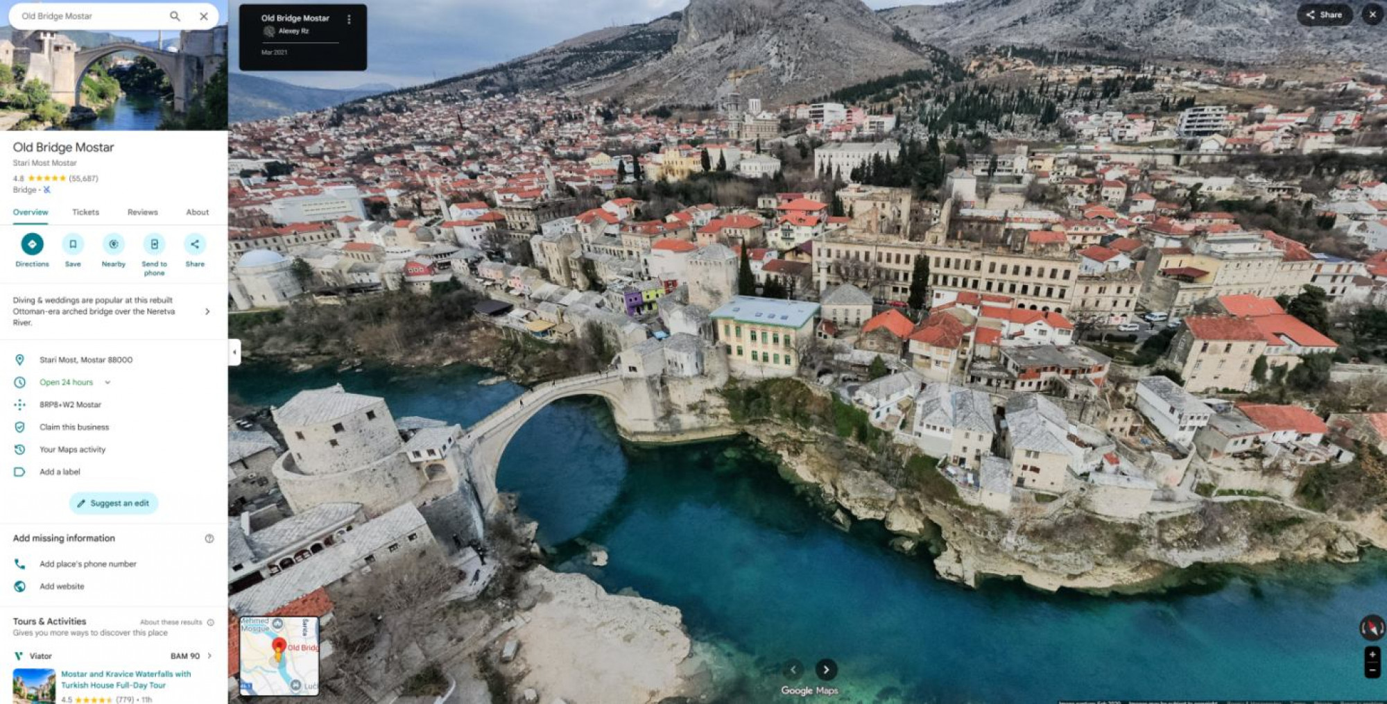 Ovim potezom BiH se pridružila državama koje su svoje kulturno-historijsko naslijeđe i prirodne ljepote otvorile svijetu kroz digitalnu platformu Google Maps. Street View omogućava korisnicima da "prošetaju" kroz gradove i sela, planiraju putovanja ili jednostavno istraže destinacije iz udobnosti doma, što bi moglo dodatno ojačati turističku promociju zemlje.