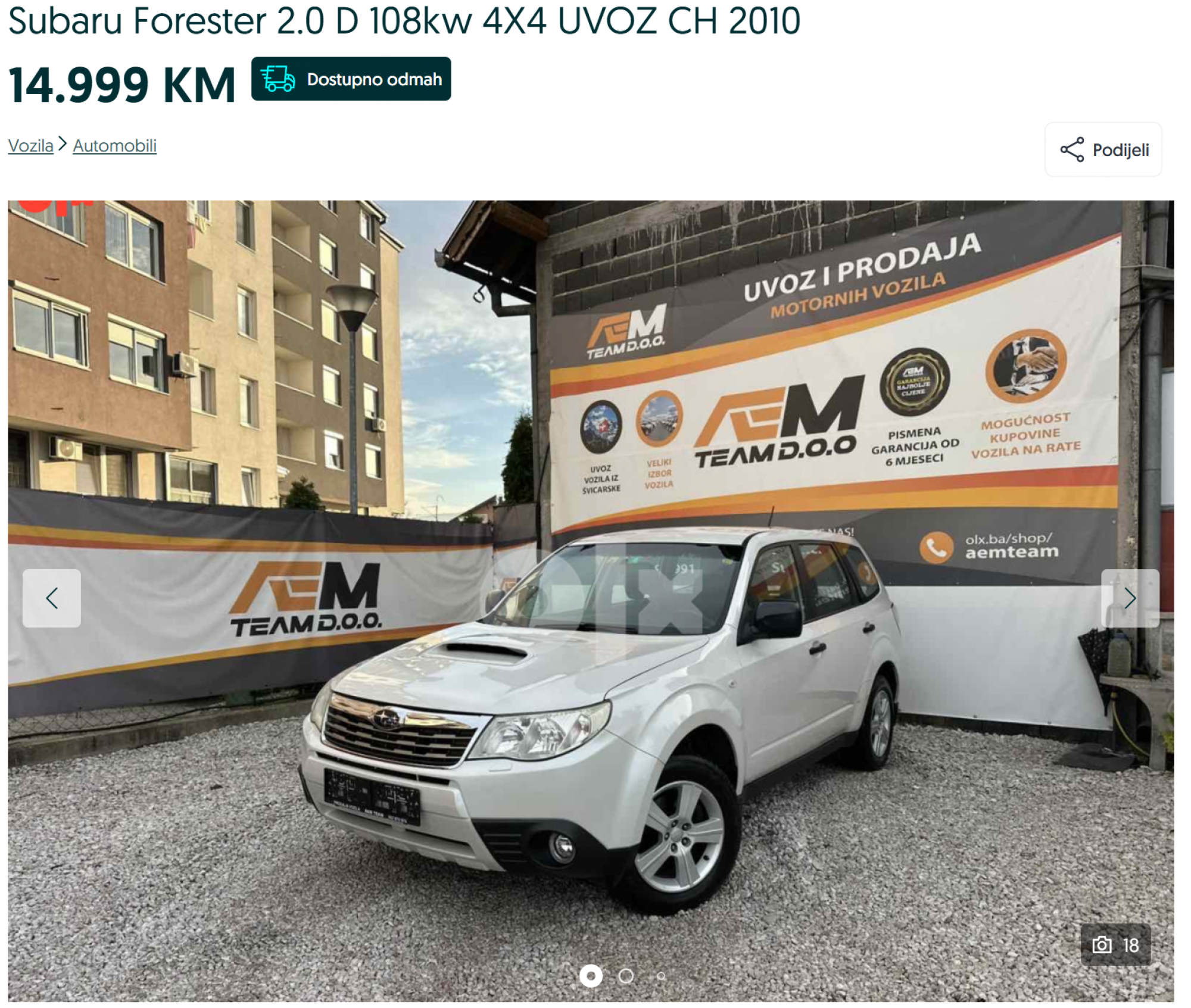 Ljubitelji SUV vozila mogu birati između Subaru Forestera 2.0D, uvoza iz Švicarske, ili Ford Kuge 2.0 TDCI Titanium, oba s pogonom 4x4 i cijenama od 15.000 do 17.000 KM, u zavisnosti od opreme i stanja.