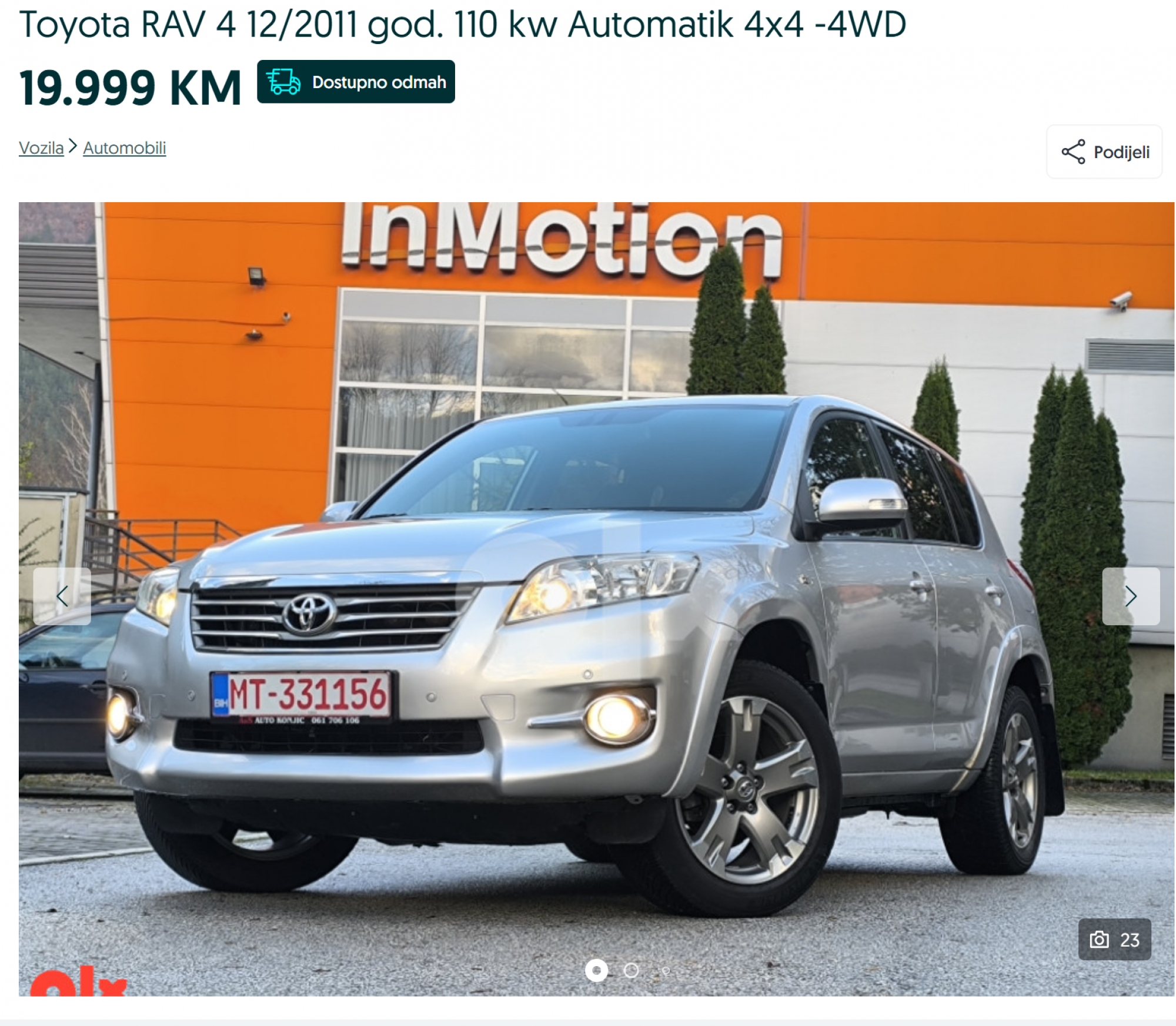 A za 19.999 KM možete dobiti Toyotu RAV 4 iz 2011. godine.
