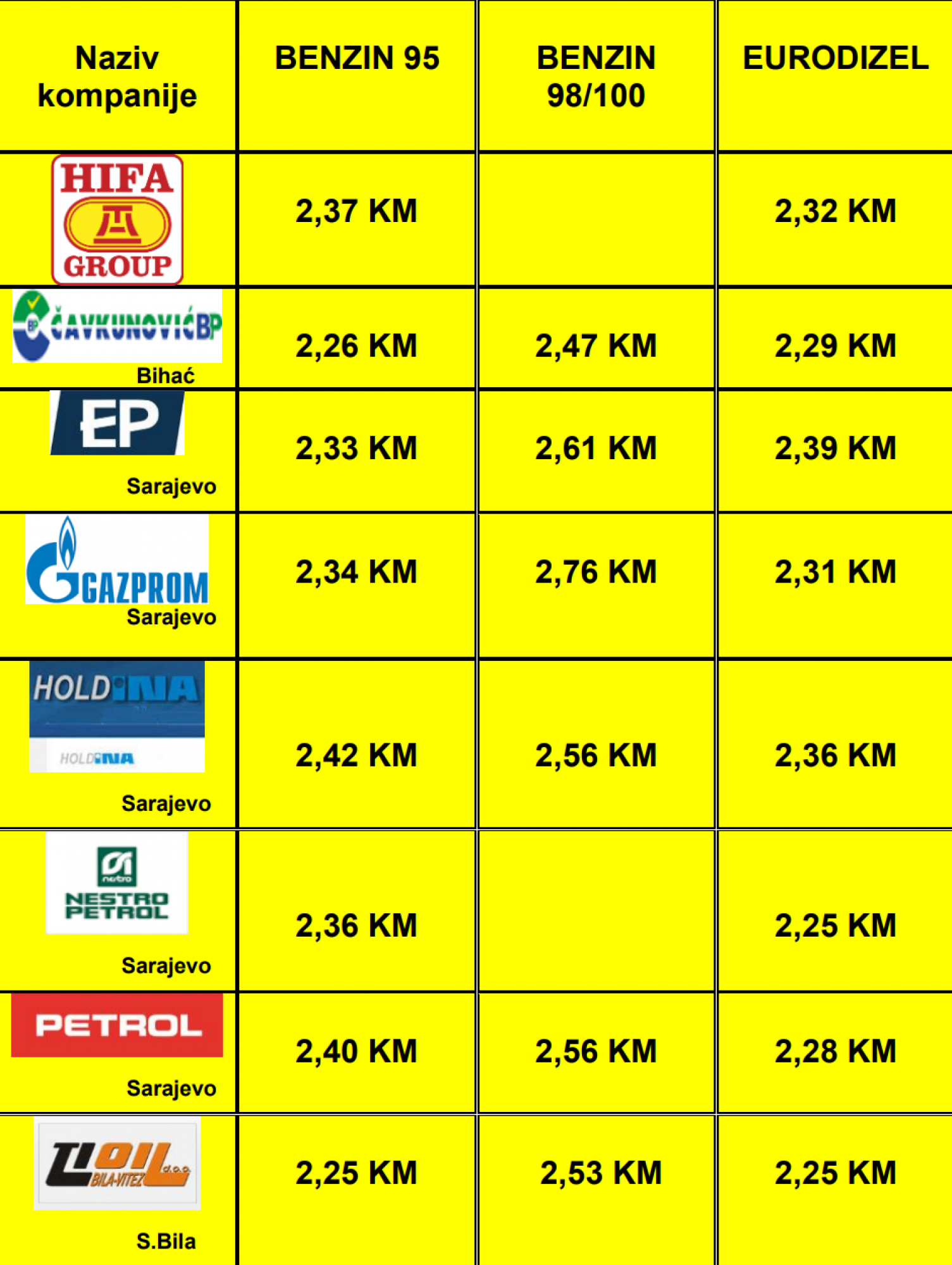 Bihamk/ Cijene goriva u BiH na dan 20. 12. 2025.