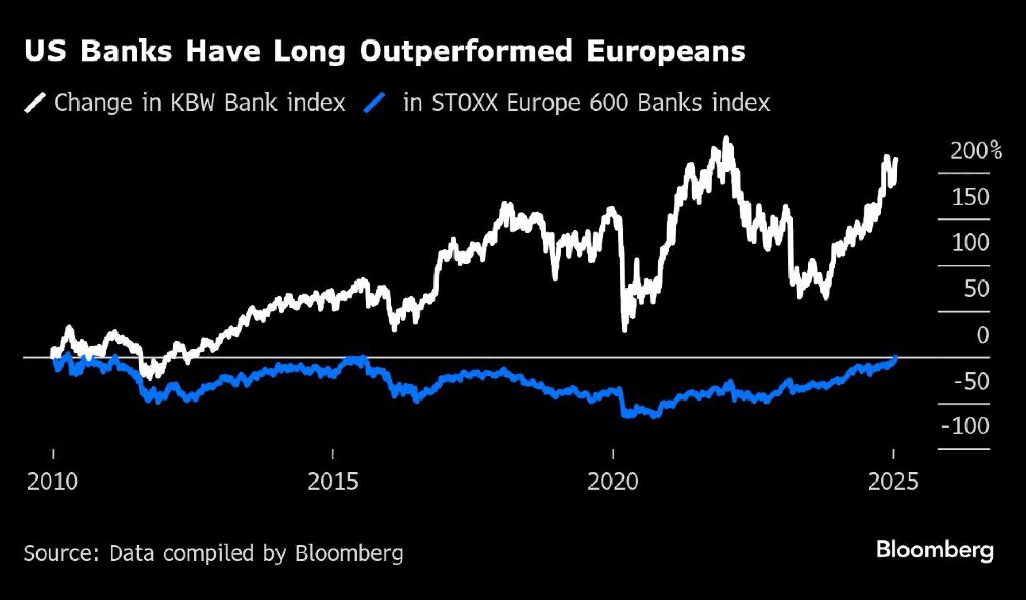 Potencijalni podsticaj za američke banke mogao bi dodatno proširiti razliku u odnosu na evropske banke, razliku koja raste već više od jedne decenije. Zabrinutost je sada da će stagnirajući rast EU dodatno opteretiti perspektive zajmodavaca u regionu.