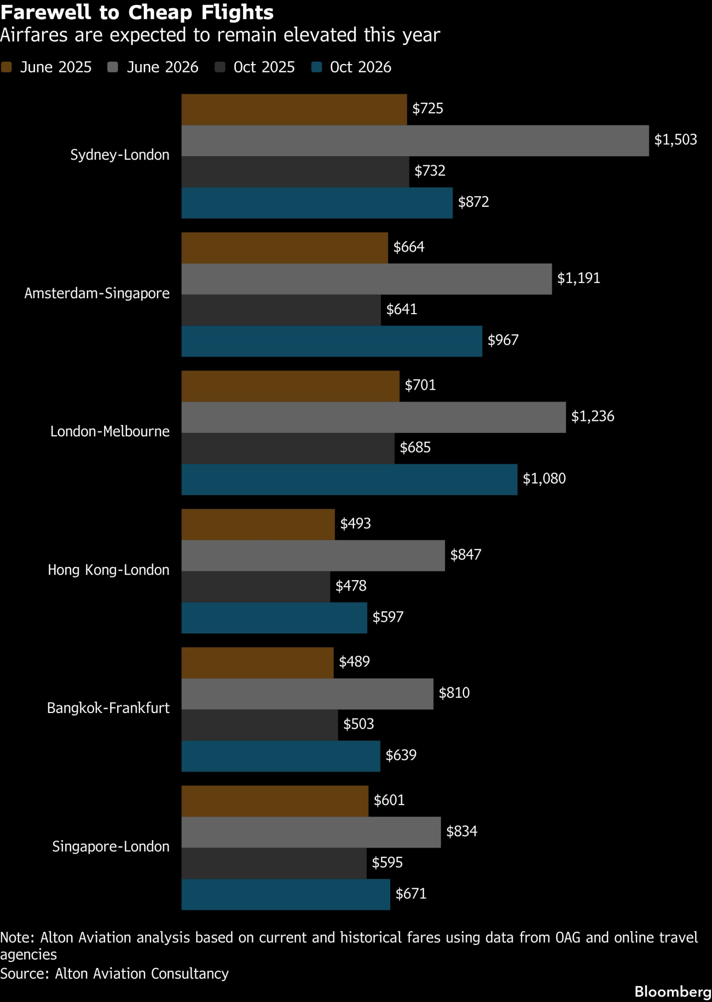 Cijene letova u junu na sedam popularnih ruta iz Azijsko-pacifičke regije ka Evropi u prosjeku su za oko 70 posto više nego prošle godine, navodi se u analizi Altona zasnovanoj na podacima kompanije Cirium i online turističkih agencija. Karta sa linije Sidnej-London sada u prosjeku košta više od 1.500 dolara, što je otprilike dvostruko više nego prošle godine. Cijene obuhvataju direktne letove, letove s jednim presjedanjem, kao i tranzite kroz aerodrome u Persijskom zaljevu.