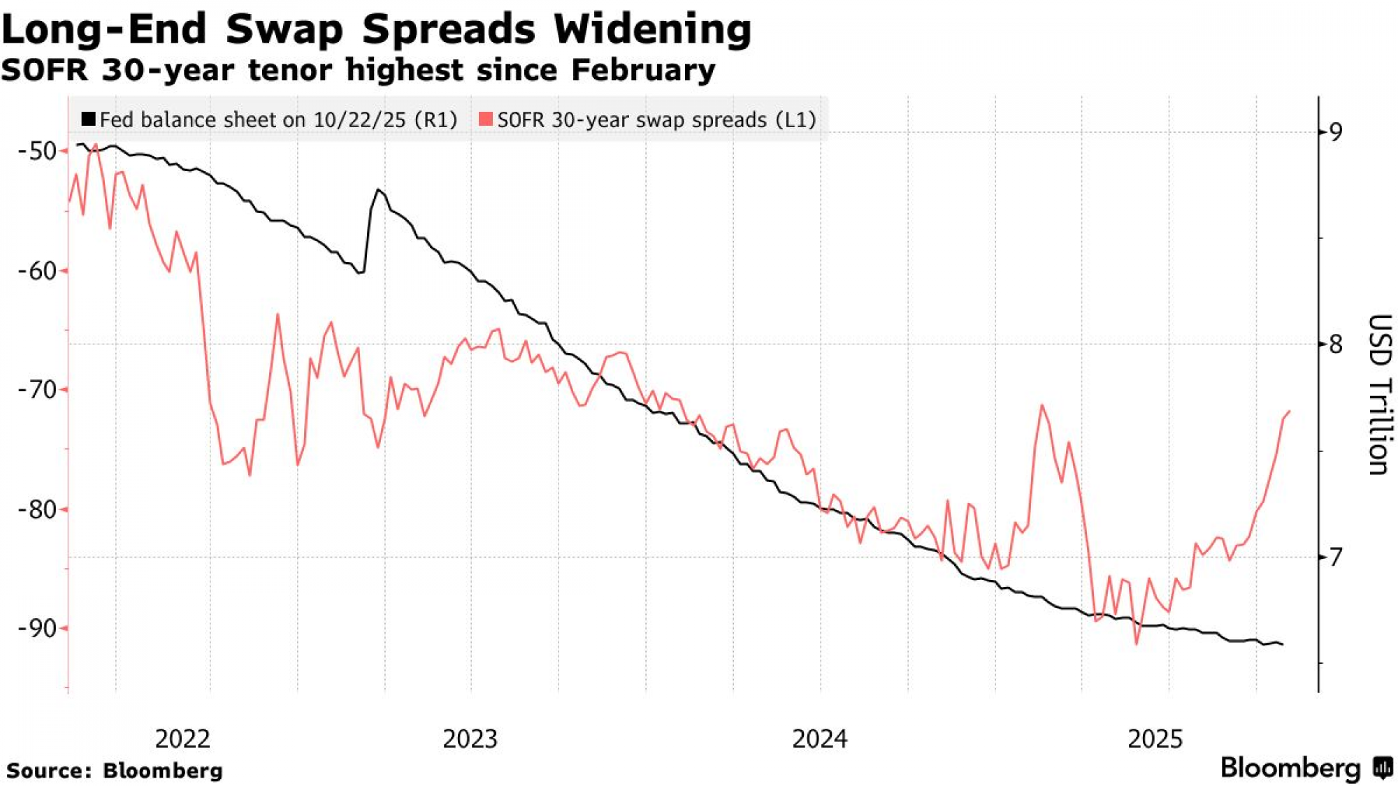 Ova strategija koristi derivate za ulaganje u to da će se razlika između kamatnih stopa na kamatne swapove i prinosa na američke državne obveznice iste ročnosti povećati. U utorak su se 30-godišnji swap spreadovi popeli na najšire nivoe u posljednjih osam mjeseci. Njihov budući smjer, međutim, djelomično ovisi o tome hoće li Fed zaustaviti smanjenje svog bilansa ranije nego što se očekivalo - potez koji bi centralna banka mogla najaviti na predstojećem sastanku.