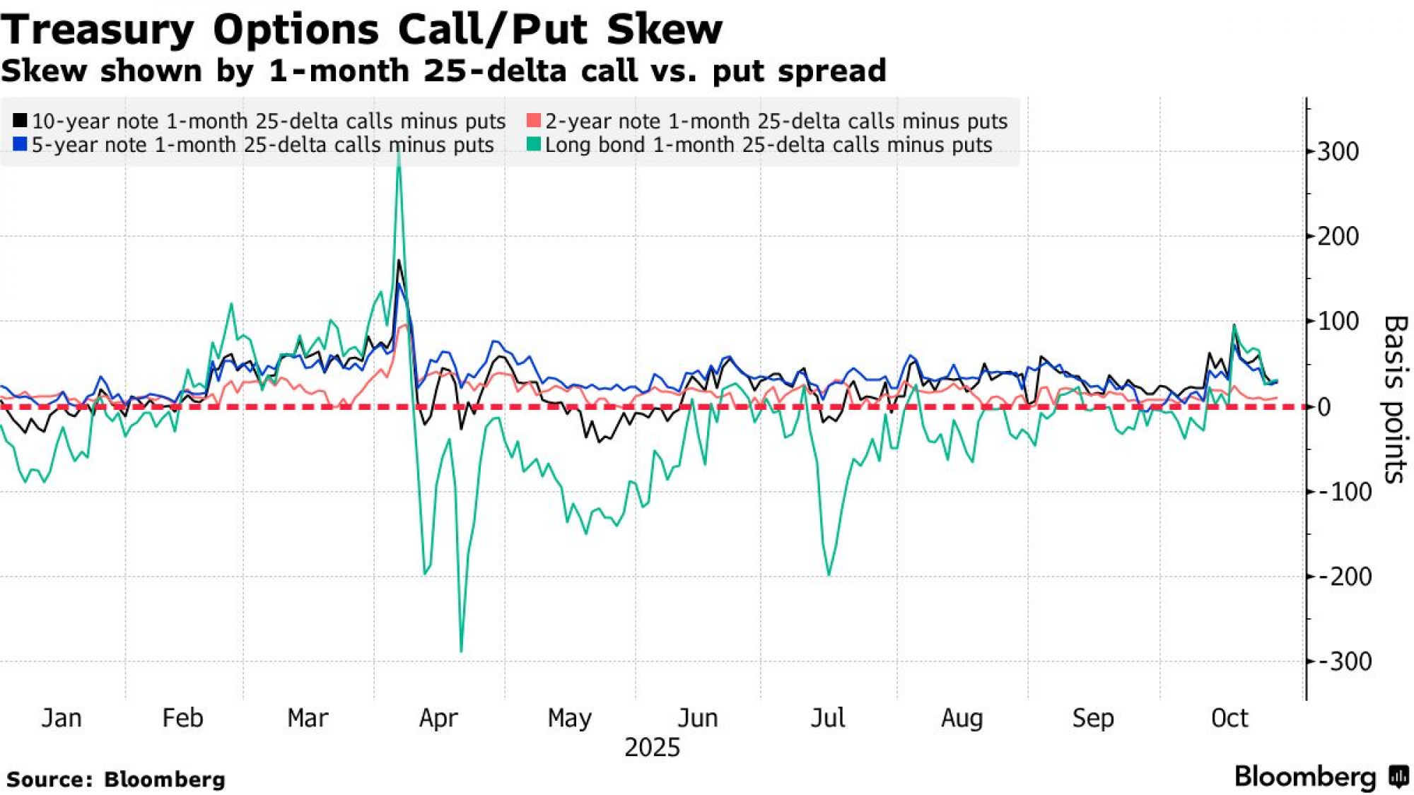 Premija koja se plaća za zaštitu državnih obveznica putem opcijskog tržišta približila se neutralnom nivou tokom protekle sedmice, nakon što je nedavno favorizirala call opcije. Kretanje je pratilo promjene u gotovinskim prinosima - 10-godišnji prinos pao je na 3,94 posto 22. oktobra, a potom se ponovno vratio iznad četiri posto tokom protekle sedmice.