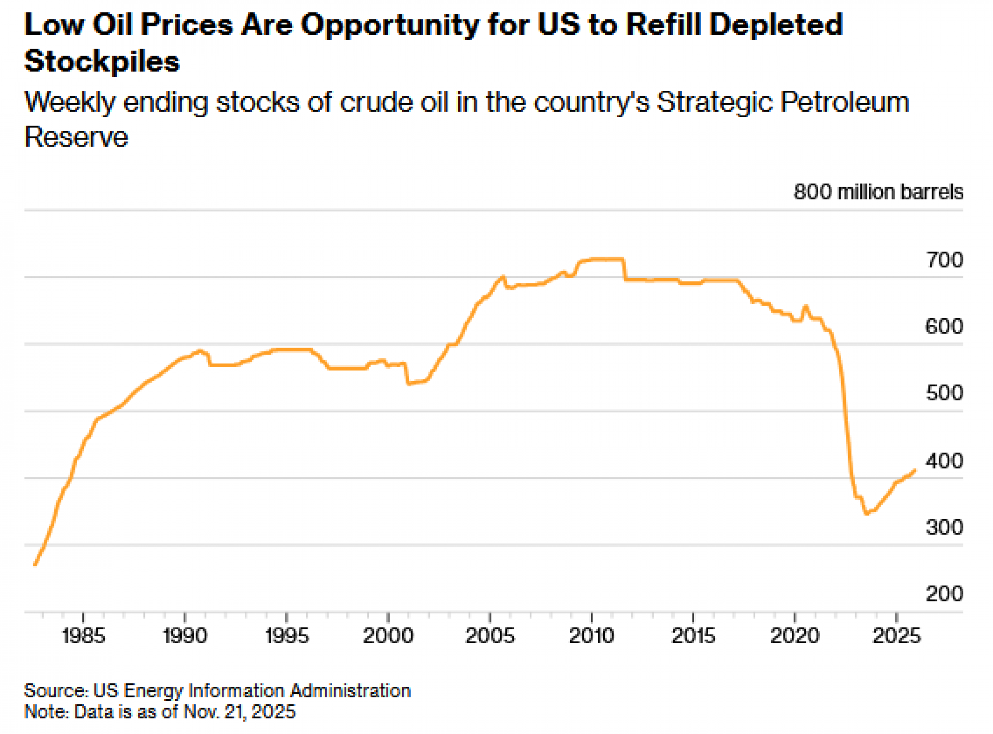 Niske cijene nafte nude priliku SAD-u da nadopuni svoje zalihe sirove nafte za hitne slučajeve, koje su sredinom studenog bile pune samo oko 60 posto. Strateške naftne rezerve i dalje su smanjene nakon što je Bidenova administracija pustila dio zaliha na tržište kako bi pokušala ukrotiti nagli porast cijena benzina koji je uslijedio nakon ruske invazije na Ukrajinu.