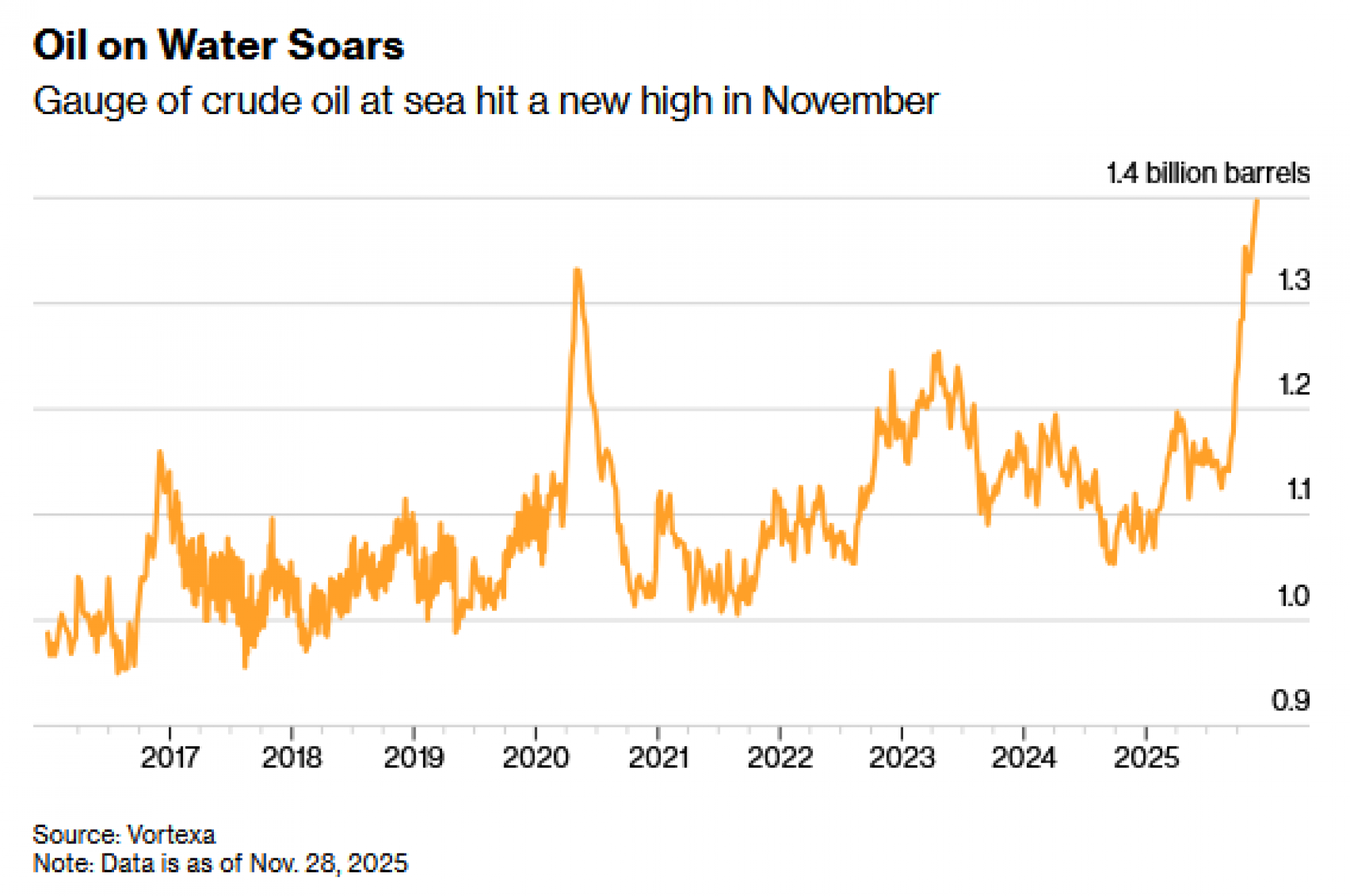 Ova godina trebala bi kulminirati prvim značajnim viškom od 2020. godine. Međunarodna agencija za energiju prognozirala je u studenom da će globalna ponuda premašiti potražnju za 2,4 milijuna barela dnevno i očekuje da će se taj jaz sljedeće godine povećati na rekordnih četiri milijuna barela dnevno.