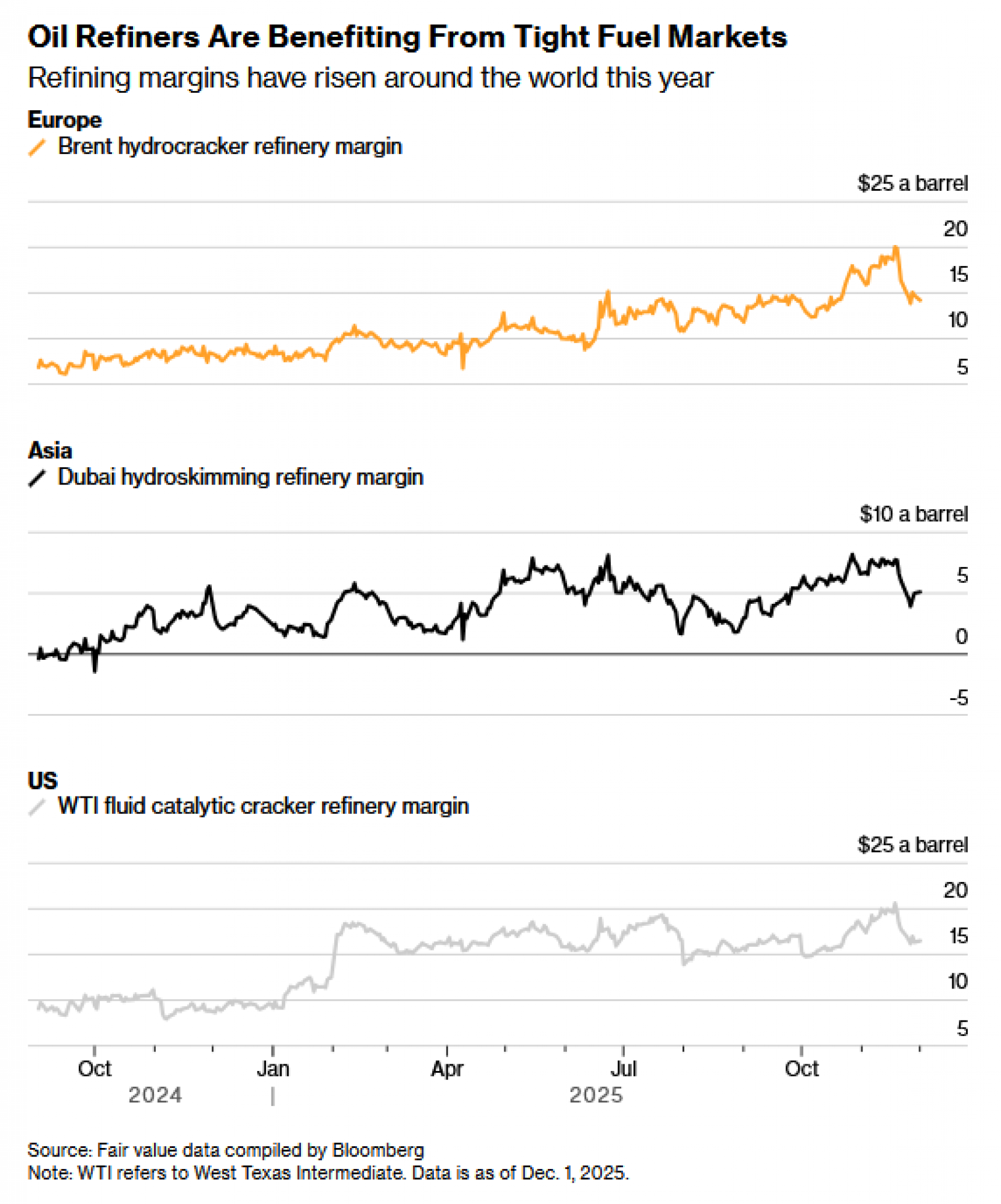 Jeftinija sirova nafta može povećati marže koje rafinerije ostvaruju preradom nafte u proizvode poput benzina, dizela i mlaznog goriva. Sredinom studenog, marže američkih rafinerija dosegle su najvišu sezonsku razinu od 2022. godine.