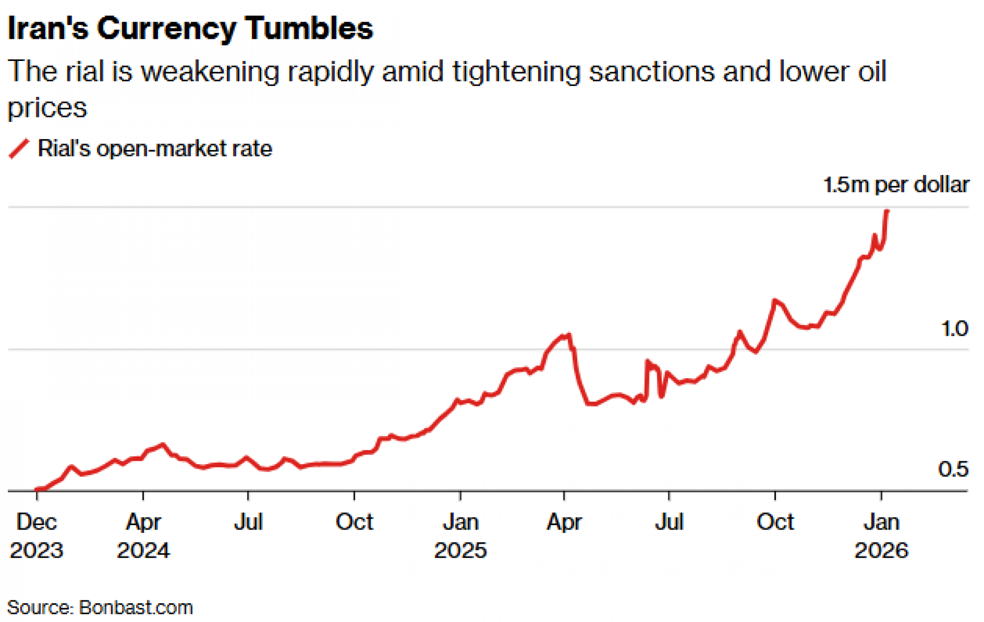 Rijal je godinama pod pritiskom zbog zapadnih sankcija i sustavne korupcije koja je potkopala povjerenje u gospodarstvo. Prema Bonbast.comu, rijal je u 2025. oslabio oko 45 posto u odnosu na američki dolar, dok su Iranci štednju pretvarali u strane valute, zlato ili nekretnine.