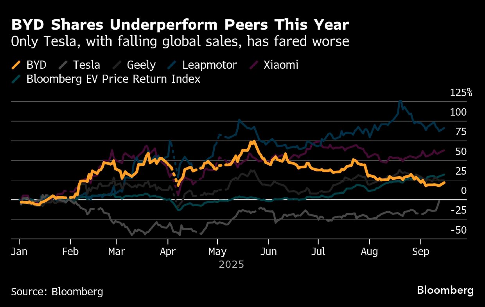 No u Kini, svom najvećem tržištu, BYD se suočava s problemima pri dodatnom snižavanju cijena i privlačenju novih kupaca. U tri mjeseca do kraja septembra kompanija je zabilježila prvi pad prodaje na godišnjem nivou još od 2020. godine. Djelomično je riječ o sezonskoj slabosti, ali konkurenti poput Geelyja, Leapmotora i Xiaomija također preuzimaju sve veći dio tržišta.