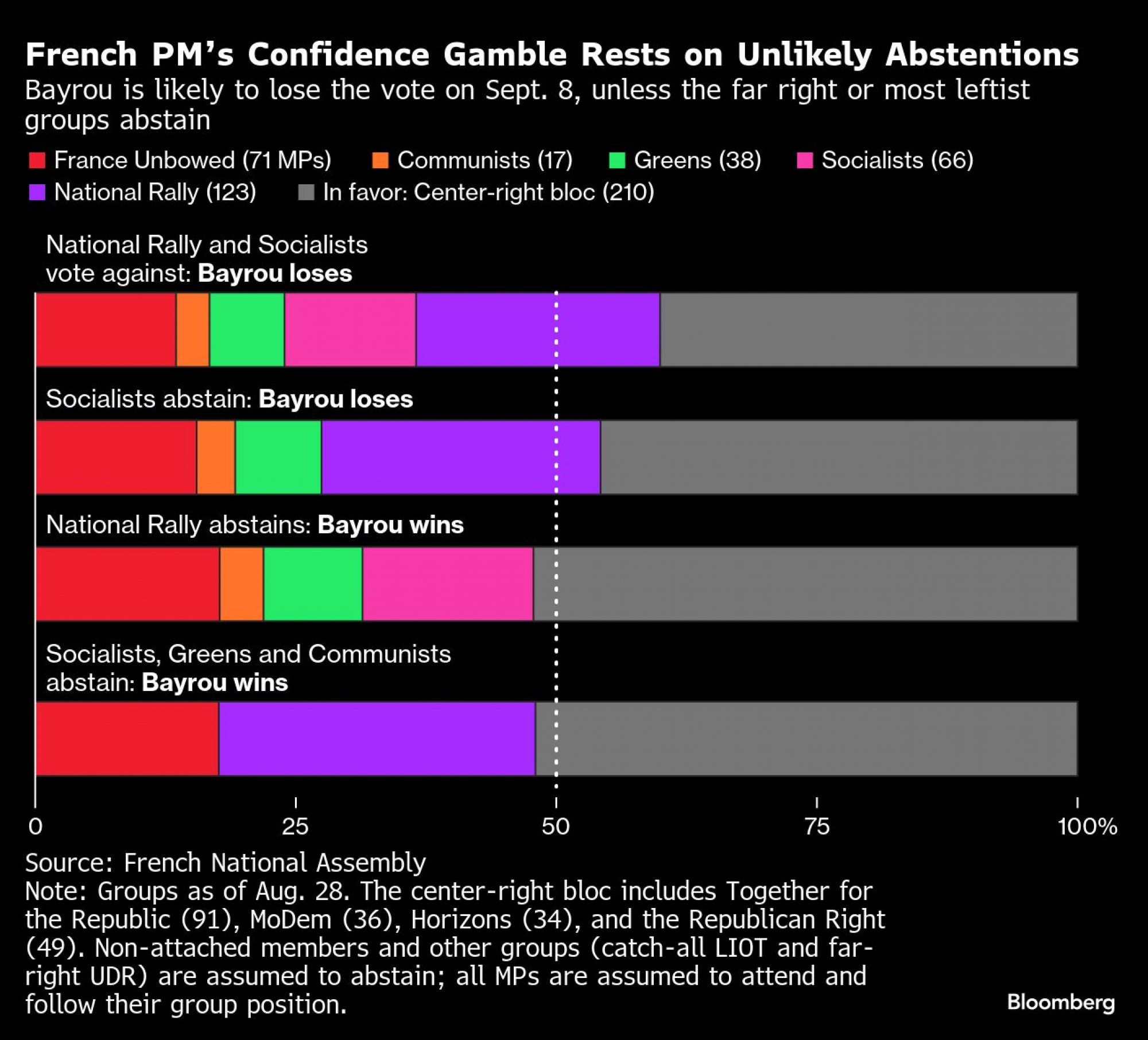 Tri najveće opozicione grupe, krajnje desno Nacionalno okupljanje, ljevičarska Nepokorena Francuska i socijalisti, obećale su da će glasati protiv Bayroua, ostavljajući mu veoma malo nade.