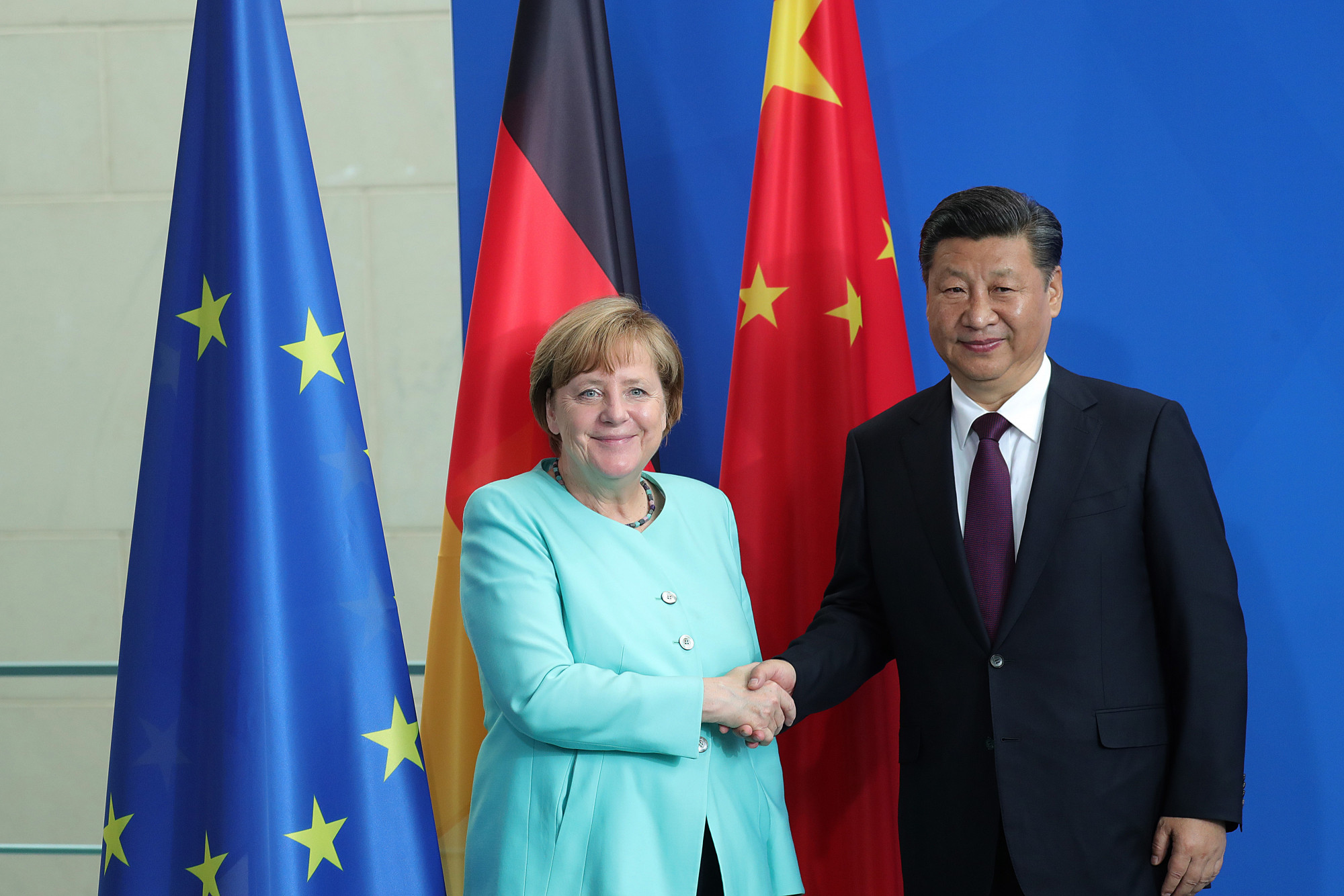 Međutim, kada su se 2016. godine kineske firme pojavile kao kupci njemačkih strateških firmi, kao što su robotička firma "Kuka" i proizvođač opreme za industriju poluprovodnika "Aixtron", njemački političari i privrednici poznati po svom svesrdnom zalaganju za slobodno tržište naprasno su zatražili barijere, pravdajući to tehnološkom ranjivošću i nacionalnim interesima. Doduše, i dalje je insistirano na saradnji, iako je Federacija njemačke industrije (BDI) 2019. godine otvoreno predstavila Kinu kao sistemskog konkurenta.