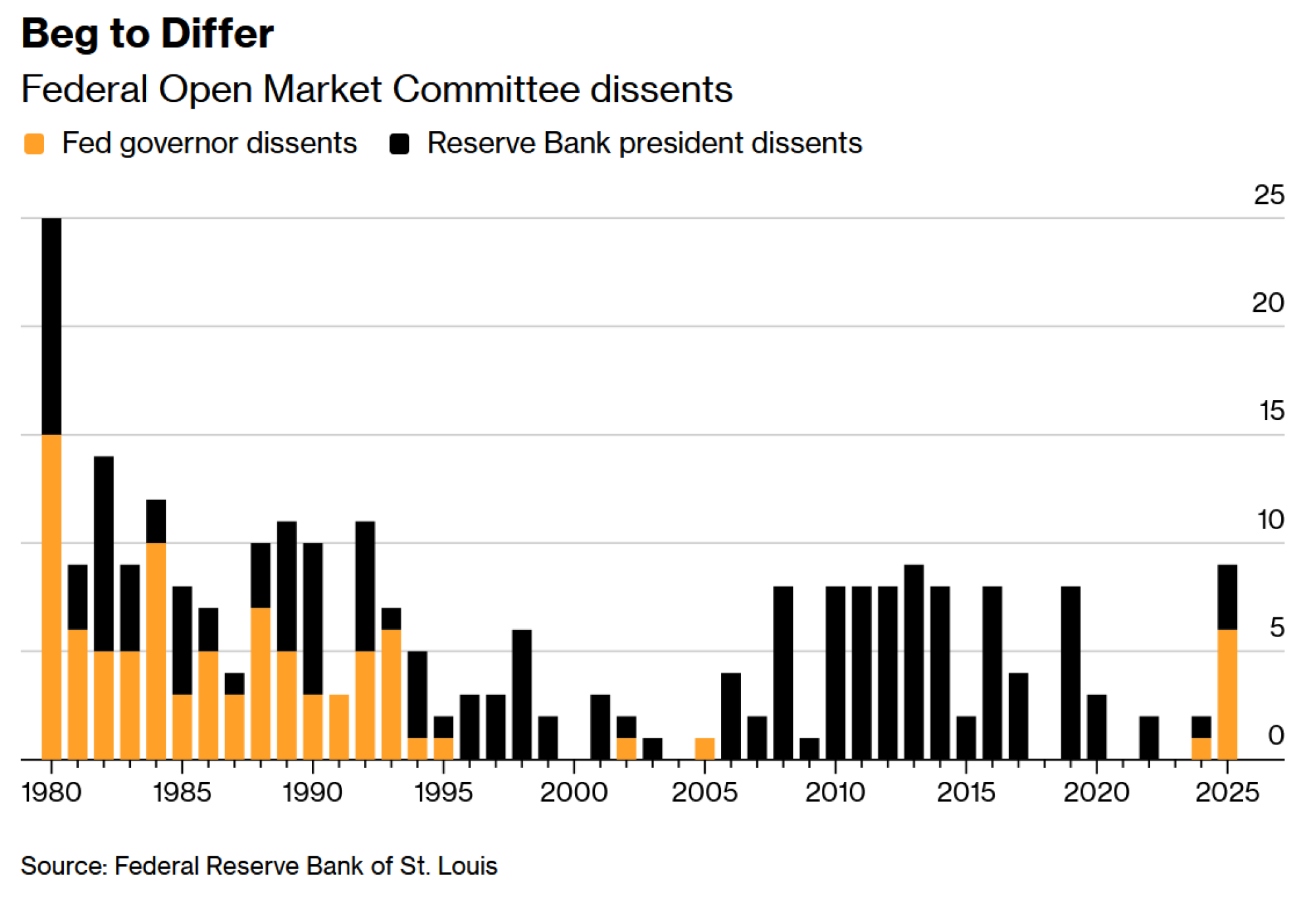 Powellovo pozitivno tumačenje rasprave o kamatnim stopama predstavlja značajan odmak od uobičajenog pristupa Feda, koji naglašava jedinstvo, kaže Dario Perkins, izvršni direktor istraživačke firme TS Lombard. Perkins, koji godinama proučava centralne banke, ističe da su jednoglasna glasanja postala norma u SAD i da se smatraju obilježjem snažnog predsjednika.