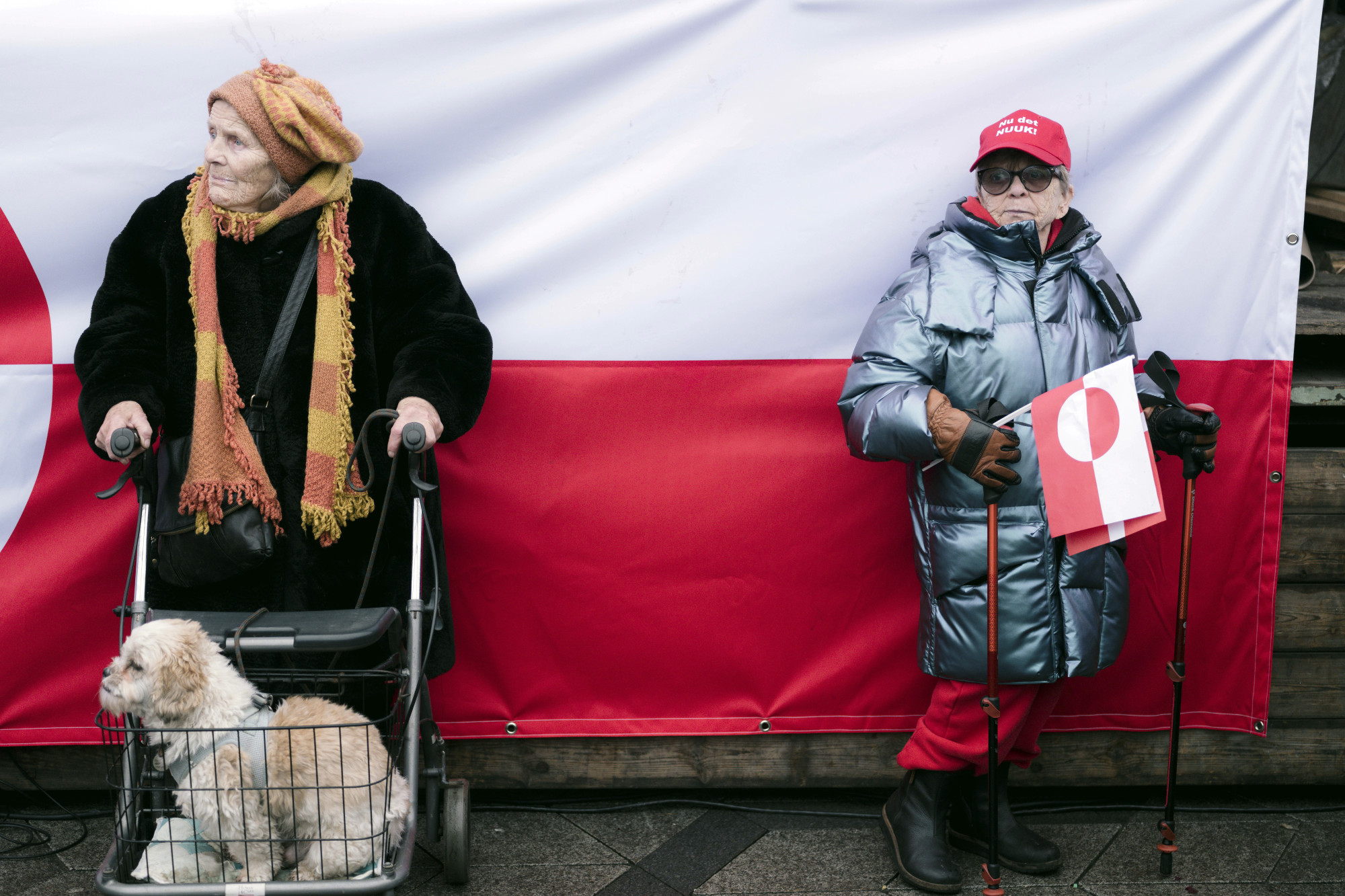 Bente Hegelund, rođena na Grenlandu od majke Grenlanđanke i oca Danca, došla je na protest noseći grenlandsku zastavu kako bi izrazila podršku svojoj zajednici.
