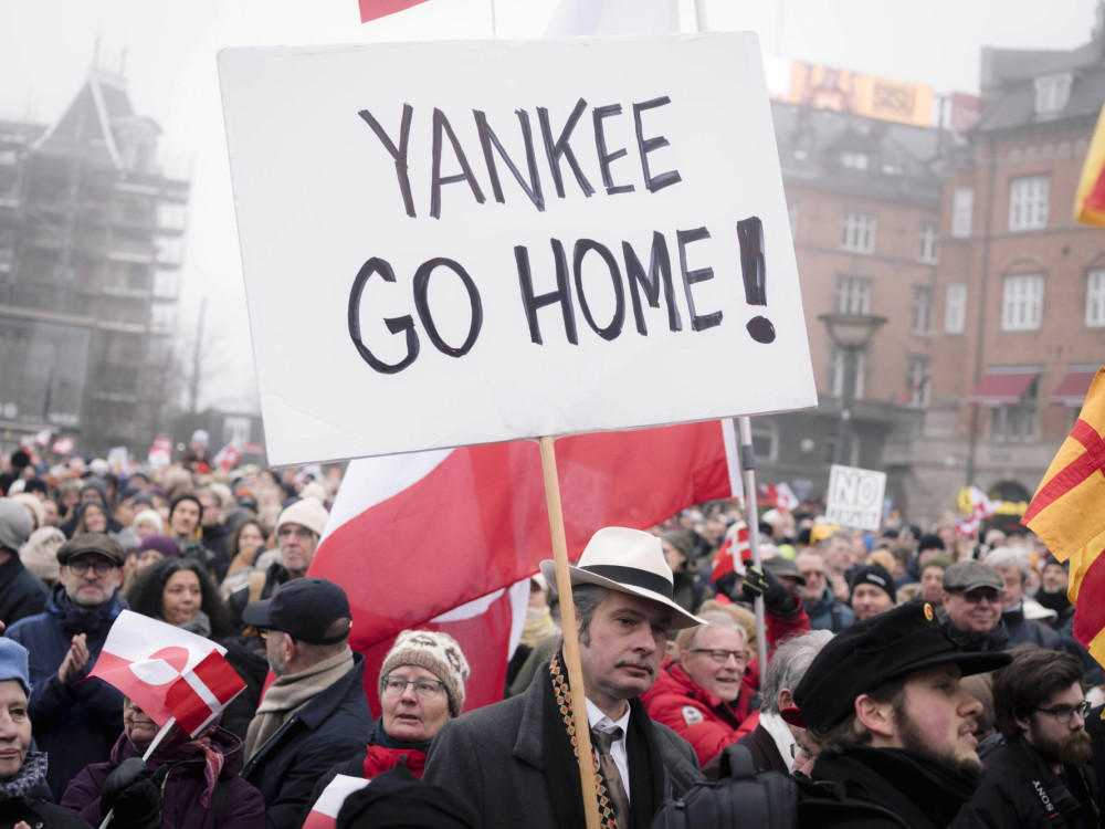 Hiljade ljudi su, uprkos hladnoći od svega +2 stepena Celzijusa, izašle na ulice Kopenhagena noseći transparente s porukama "SAD već ima dovoljno leda", "Jenkiji, idite kući" i "Nije na prodaju", aludirajući na Trumpove ponude da kupi ostrvo.