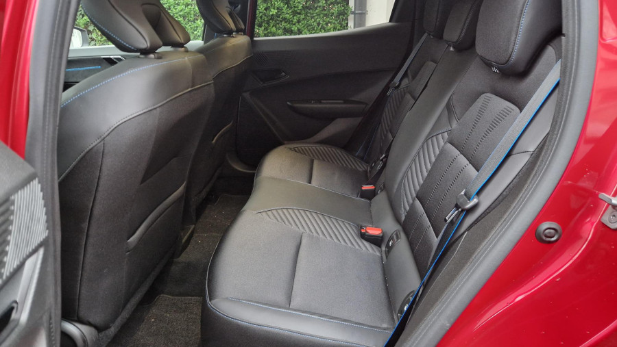 Iako se još uvijek vodi kao auto iz B segmenta, opet je narastao u svim smjerovima, pa je sada po gabaritima praktički u rangu prve generacije Meganea. Nažalost, taj rast se ne reflektira na prostranost na stražnjoj klupi, koja će za ljude više od 185 cm biti neadekvatna. Zbog kupeovske linije krova nema previše mjesta za glavu, a ako ispred vas sjede suputnici slične visine, patit će i koljena. Kraća vožnja se da izdržati, ali za neku dužu rutu ne preporučujemo. Djeci će straga biti sasvim OK, iako osim 12 voltnog priključka nema puno praktičnih detalja. Plastika na vratima je tvrda, nema naslona za ruke ni držača za piće, nema USB priključaka, prozor se ne spušta skroz do kraja, ali je zatamnjen.