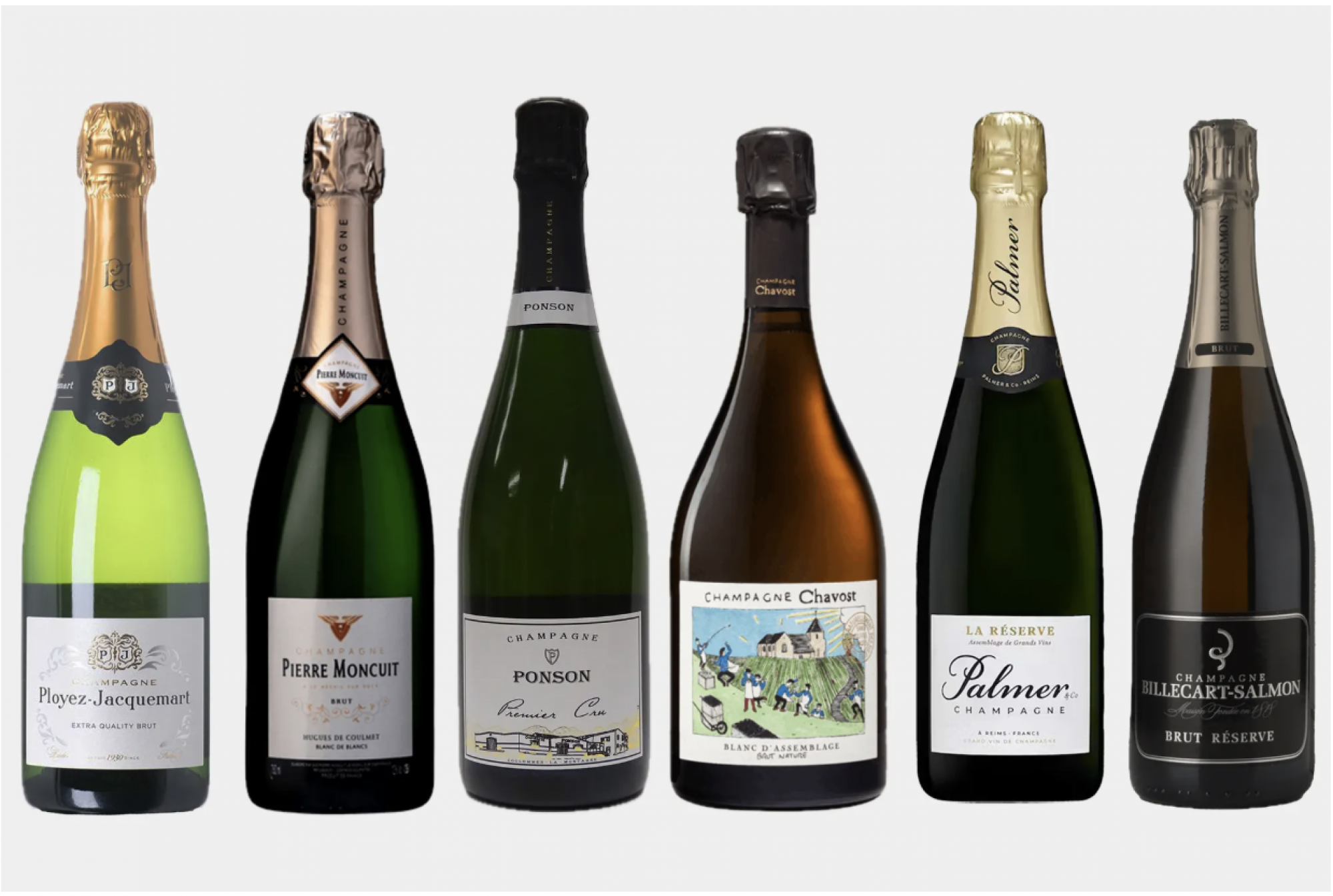 Nonvintage mješavine od malo poznatih uzgajivača i dalje nude najbolje vrijednosti, ali početne cuvée verzije velikih brendova često su snižene neposredno prije praznika. Trgovac iz SAD i UK, Berry Bros & Rudd, nudi odličan grand cru šampanjac, pod sopstvenom etiketom, po cijeni od 50 dolara.