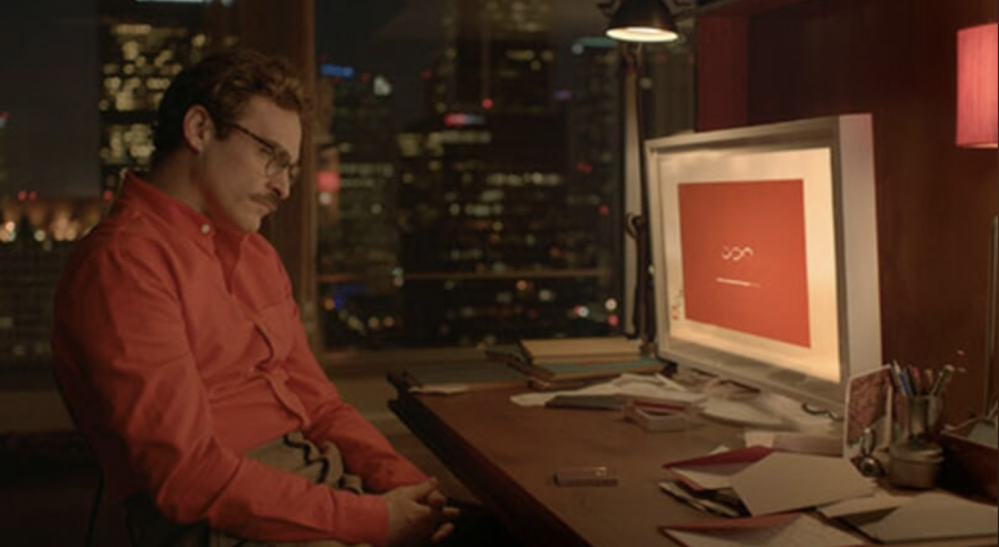 Ako Suvišni izvejštaj govori o obećanjima i opasnostima predviđanja, film Ona je usmjeren na međudejstvo tehnologije i ljudske ranjivosti. Film Spike Jonze-a je ljubavna priča između Theodorea, kojeg igra Joaquin Phoenix, i Samanthae, njegovog AI operativnog sistema, kome glas daje Scarlett Johansson. Samantha je topla, duhovita i emocionalno usklađena.