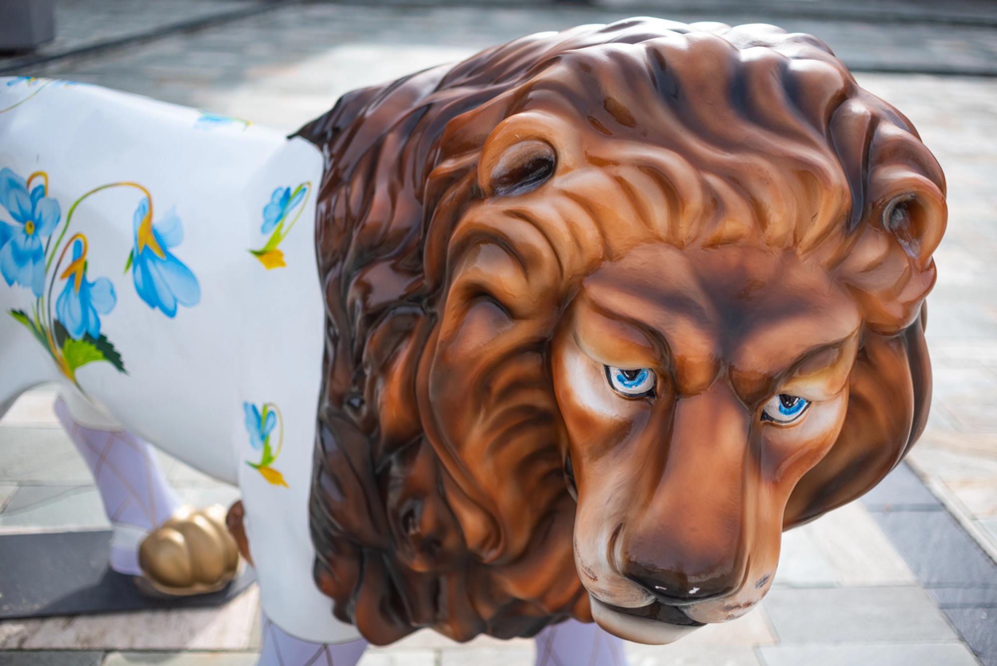 Porcelanska figura lava u realnoj veličini na ulazu u Muzej Herendi porcelana | Depositphotos