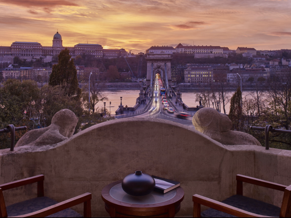 Zgrada, originalno izgrađena u art nouveau stilu, restaurirana je do nivoa gdje svaki detalj: od mozaika do gvozdenih elemenata, ima istorijsku referencu. Hotel se nalazi direktno na obali Dunava, sa pogledom na Lančani most i Budimski dvorac, što ga čini jednim od najtraženijih "heritage luxury" hotela u Evropi.