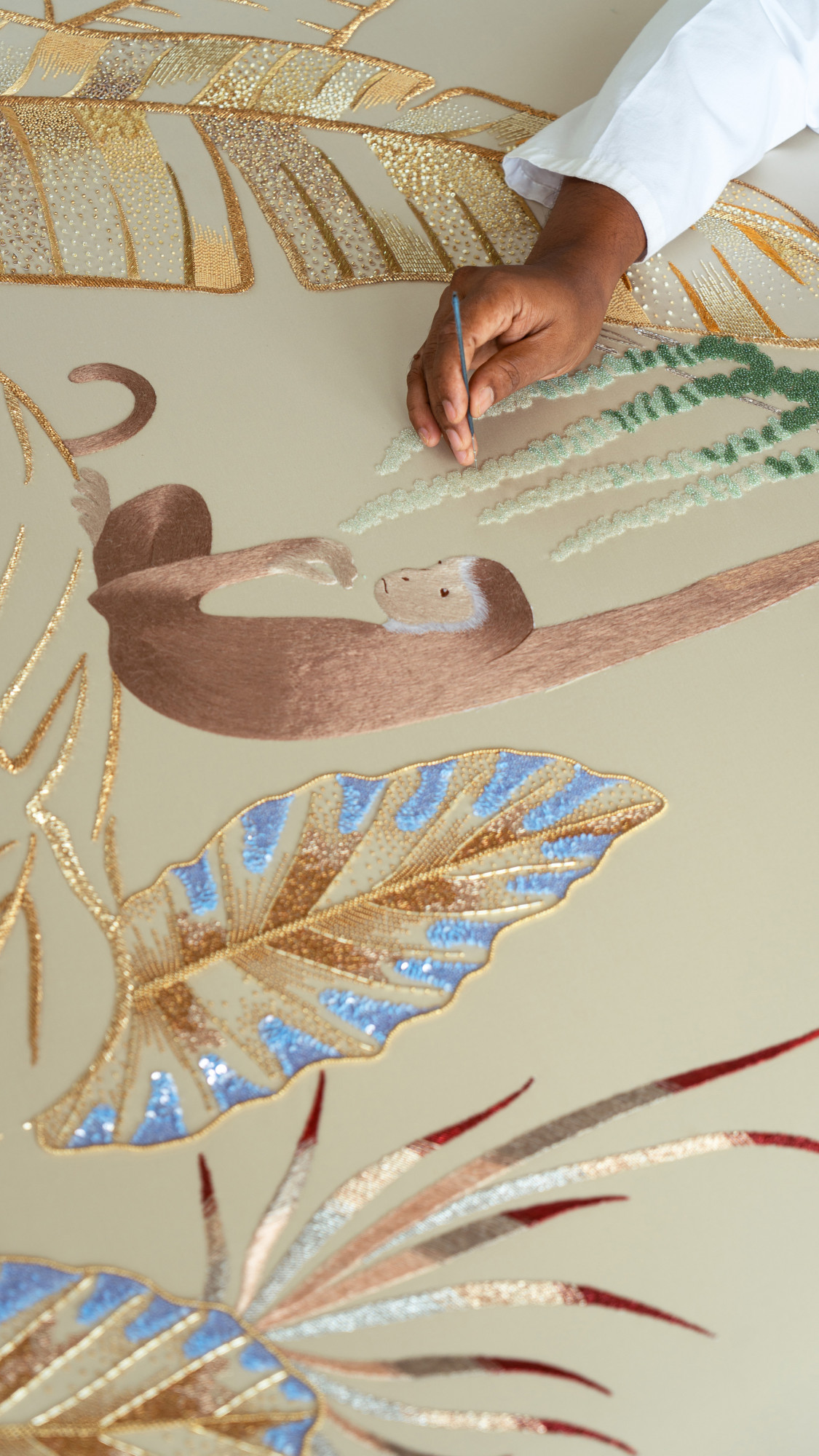 Detalj na ručno izrađenom tekstilu za namještaj | Armani Casa
