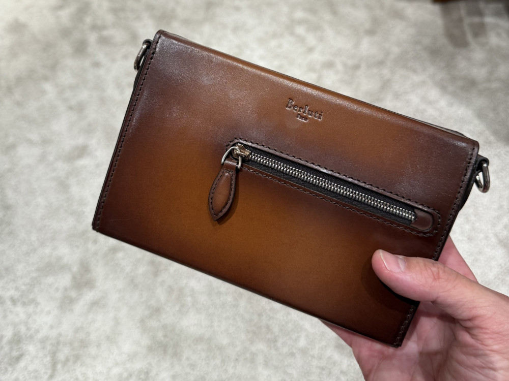 Mnogi Berluti kožni proizvodi, svi izrađeni u Italiji, nose prepoznatljivu patinu brenda, uključujući i simpatičnu torbicu Jour de Pouch, dimenzija i oblika da stane tačno za jednu knjigu, koju sam vidio tokom intervjua. Berluti Forestière jakna, prvobitno dizajnirana za arhitektu Le Corbusiera i izrađena u francuskoj kući Arnys (koju je Berluti kupio 2012), nudi se u nekoliko novih varijanti za sljedeću sezonu. Pod Mansveltom, brend se fokusira na ove osnovne motive, a ne na širok spektar novih dizajna.