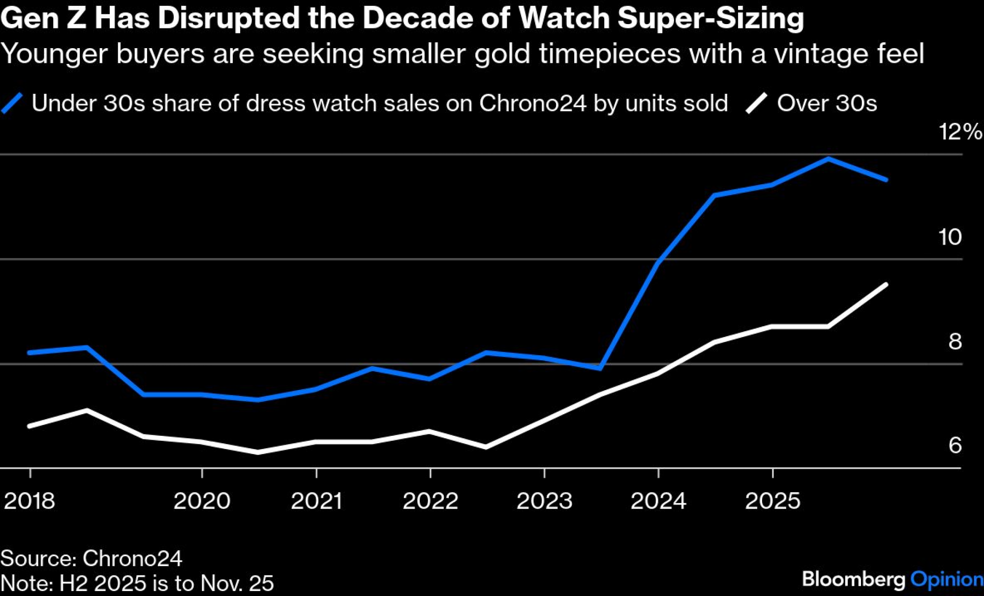 Gen Z donosi kraj ere glomaznih satova. Okreću se manjim zlatnim satovima vintage izgleda | Bloomberg