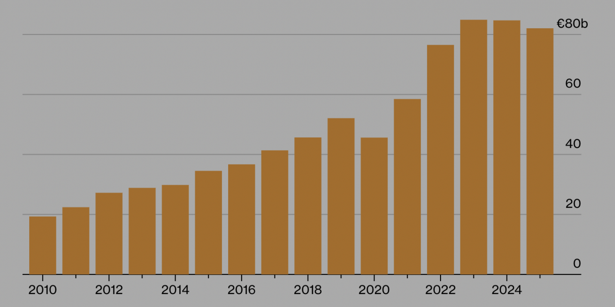 Najveći igrač luksuza bilježi pad. Godišnji prihod LVMH-a, 12 mjeseci zaključno sa septembrom | Bloomberg