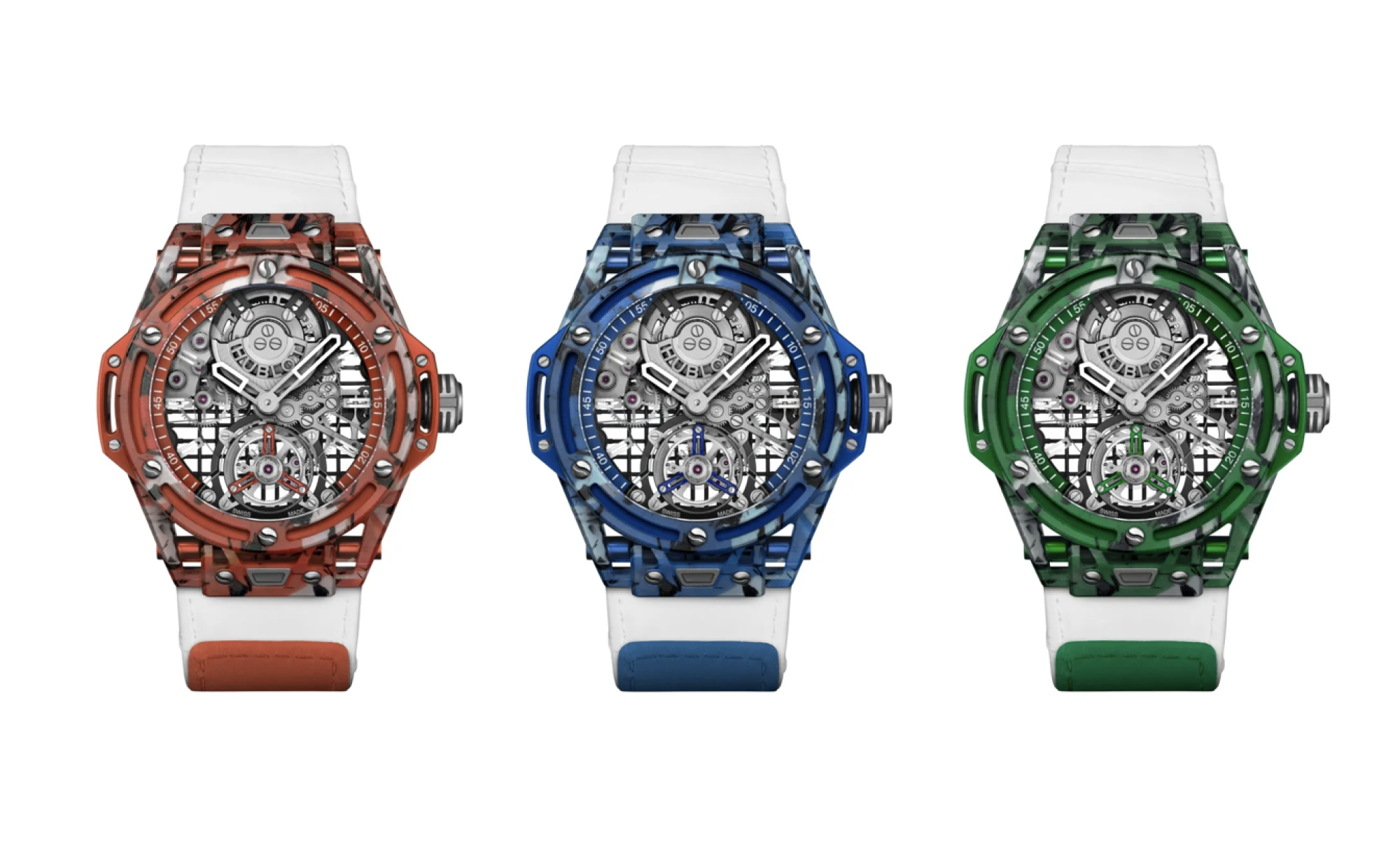 Umjesto klasične osnovne ploče na koju se pričvršćuju komponente mehanizma, Hublotovi inženjeri su kreirali rešetkastu strukturu koja imitira žice na teniskom reketu. Linije debljine 0,55 mm djeluju kao nepravilno raspoređene "žice", ali zapravo nisu pojedinačne isprepletene niti - već jedan jedinstveni komad izrezan laserom. Dizajn je izuzetno upečatljiv i djeluje potpuno novo. Cijena: 121.000 dolara.
