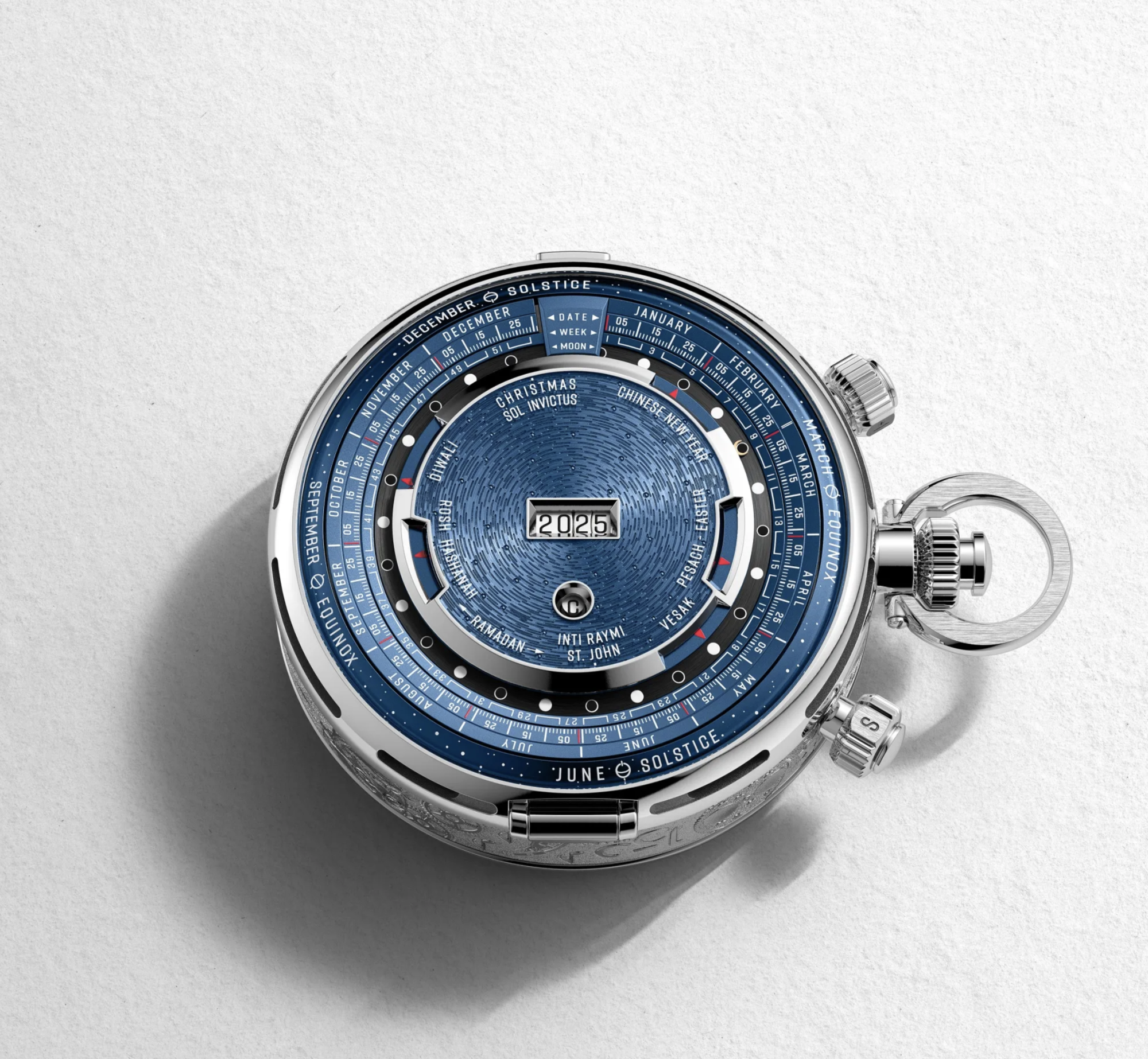 Na prednjoj strani je prelijep vječni kalendar, hronograf i tourbillon. Na zadnjoj strani je složen analogni kompjuter koji organizuje lunarni kalendar, zapadni kalendar i lunisolarni kalendar, tako da možete izračunati dan, na primjer, praznika Diwali ili Lunarne Nove godine bilo koje godine.