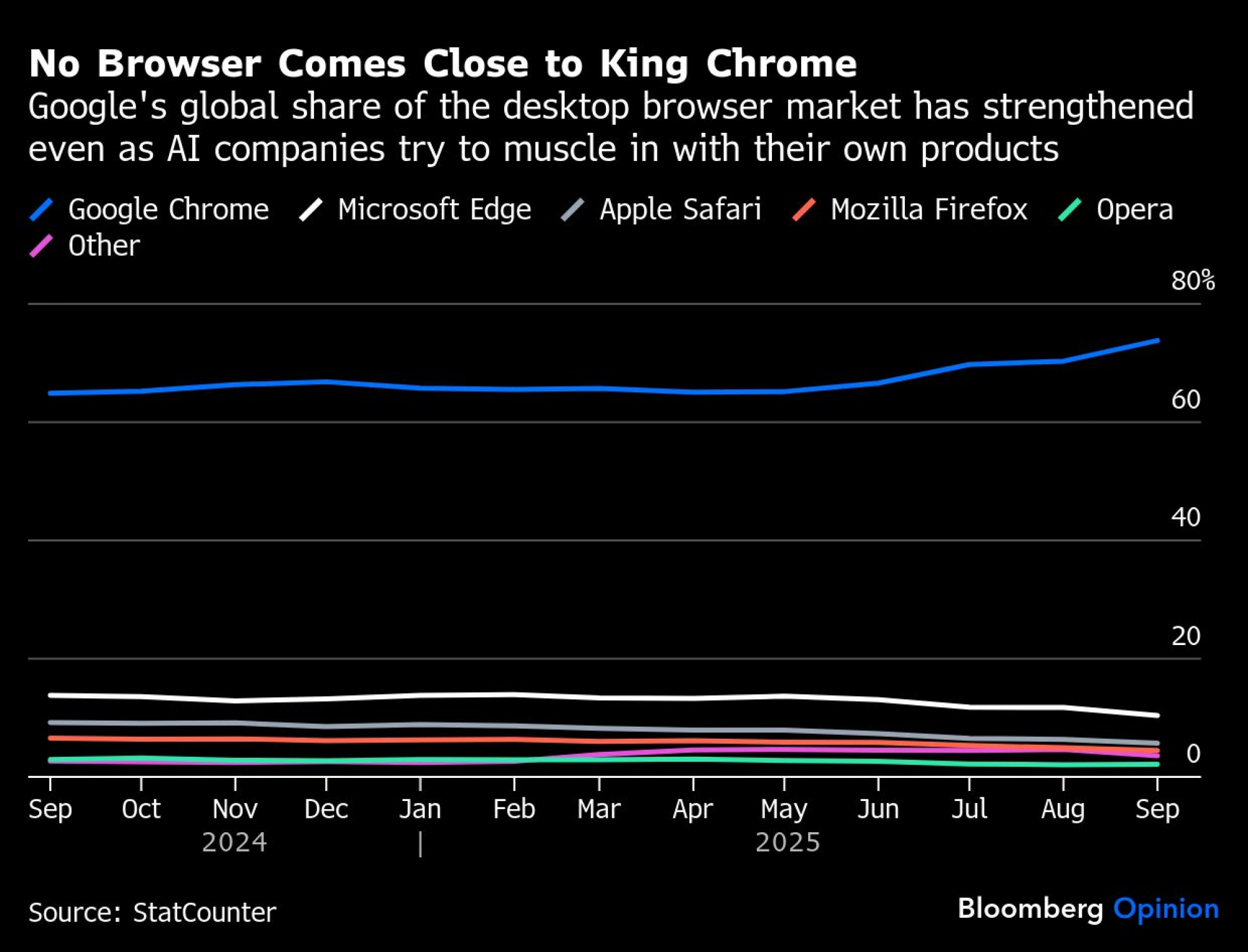 Kada se pogleda unazad, Google je svoj Chrome lansirao 2008/2009. i za samo četiri godine preskočio Firefox i Safari. Microsoft, iako svjestan promjene, reagirao je sporo: Edge je stigao prekasno. U naletu AI pretraživača koji su sve dominantniji i napredniji, razumno je zapitati se prijeti li "Microsoft scenarij" sada Googleu.
