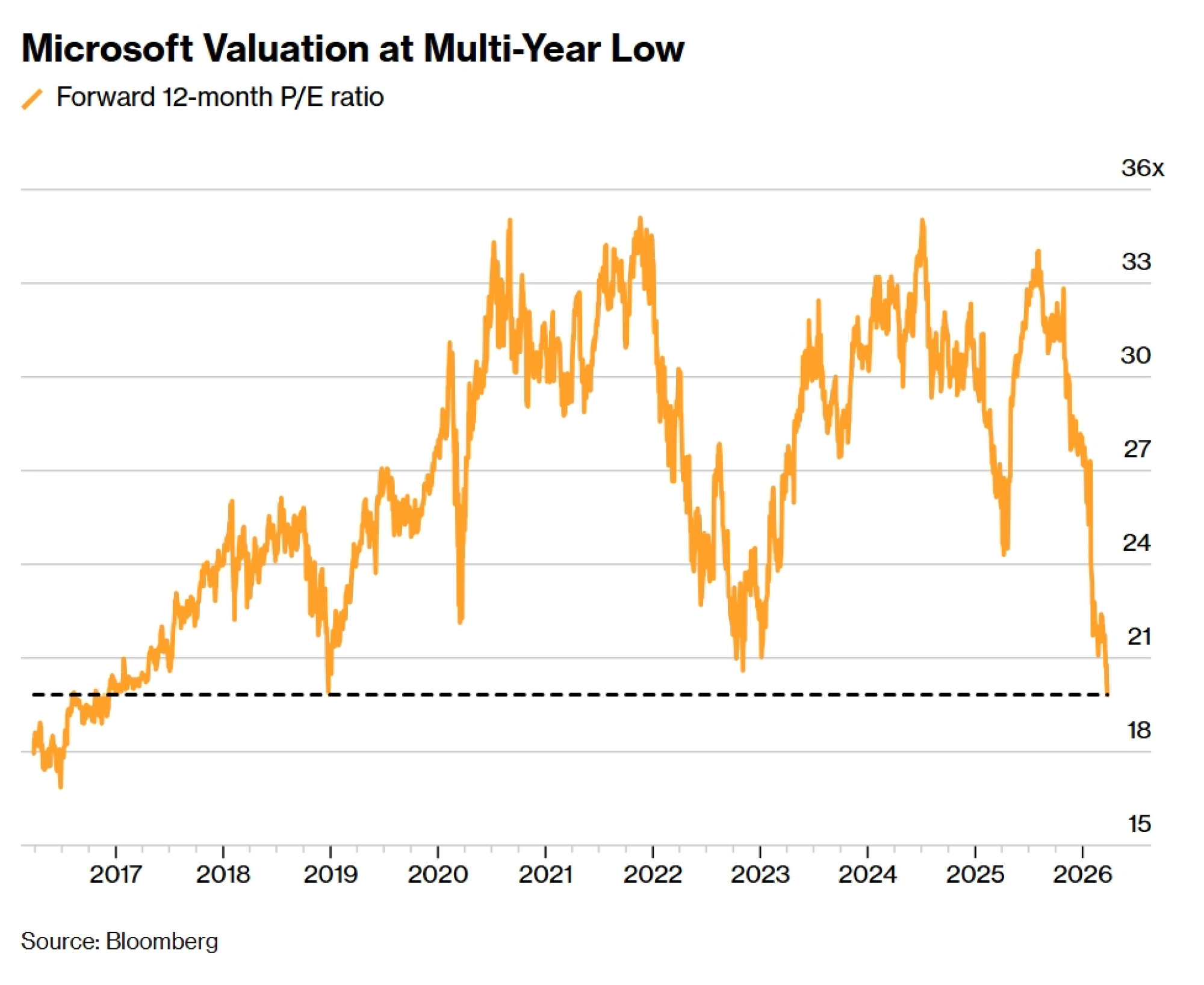 Zbog rasprodaje dionica izgleda relativno jeftino, trgujući po cijeni koja je manja od 20 puta dobiti u sljedećih 12 mjeseci, što je najniža razina od lipnja 2016. Microsoftov multiplikator je tek malo iznad indeksa S&P 500, a nedavno se njime trgovalo uz diskont u odnosu na širi burzovni indeks, prvi put od 2015. godine.