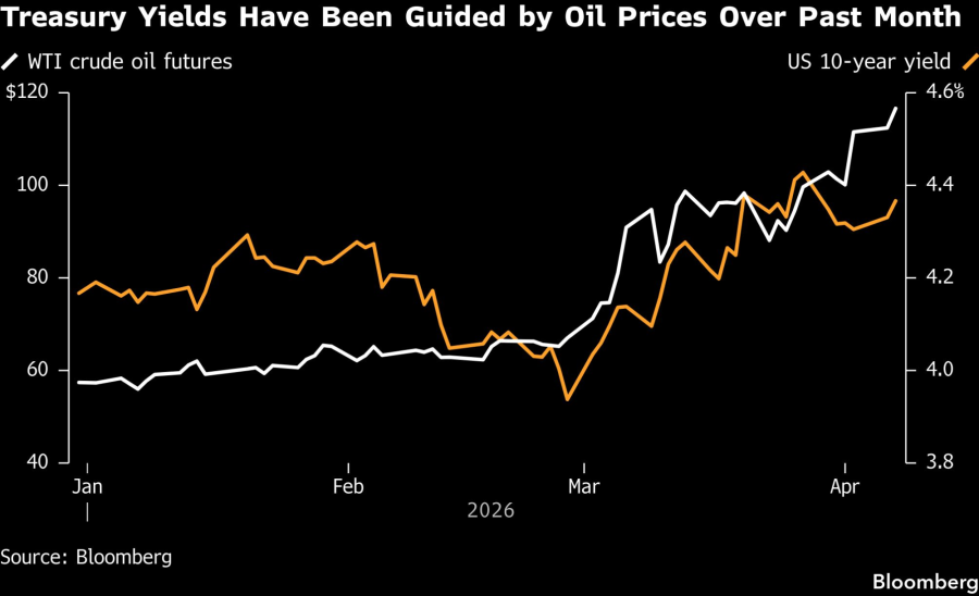 Cijene nafte, ključni pokretač prinosa na američke obveznice od početka američkog napada na Iran 28. februara, porasle su, pri čemu su fjučersi na referentnu američku naftu West Texas Intermediate skočili i do 4,6 odsto u odnosu na zatvaranje sa najvišeg nivoa u više godina u ponedjeljak. Prinosi su krajem marta dostigli najviše nivoe od početka godine usled rasta cijena energije, ali su se potom povukli zbog sve većih strahova da bi šok na tržištu nafte mogao da pogodi ekonomski rast.