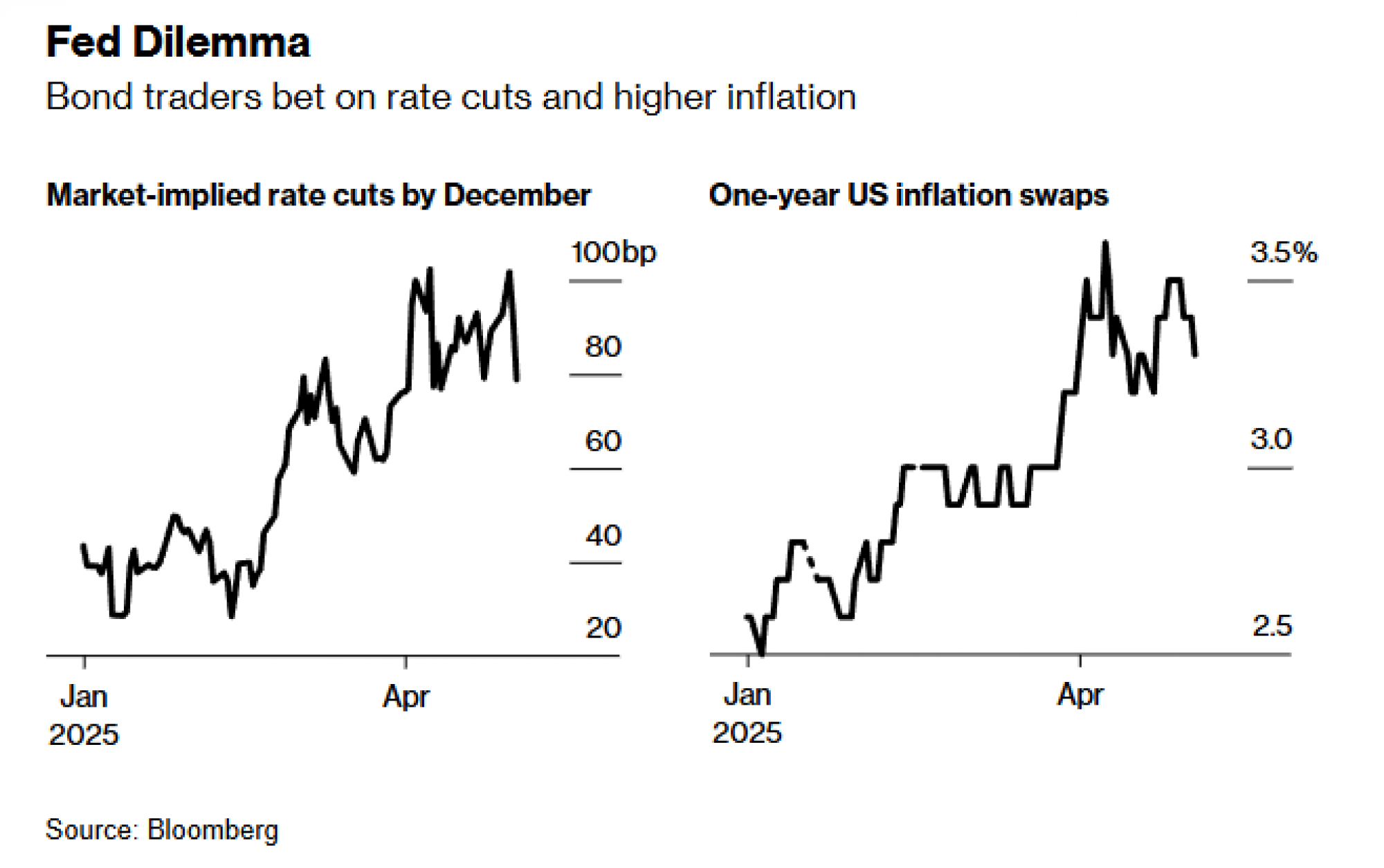 Signali s tržišta obveznica pokazuju da se Federalne rezerve nalaze u političkoj dilemi, što ugrožava nade da će Jerome Powell i ekipa brzo ublažiti udar carina. Svjetska rezervna valuta, američki dolar, nastavlja gubiti smjer, suprotstavljajući se kretanjima prinosa na državne obveznice. Slične podjele događaju se i na tržištima kredita i dionica, dok bikovi prkose visokoj razini bankrota i sve slabijim procjenama zarada.