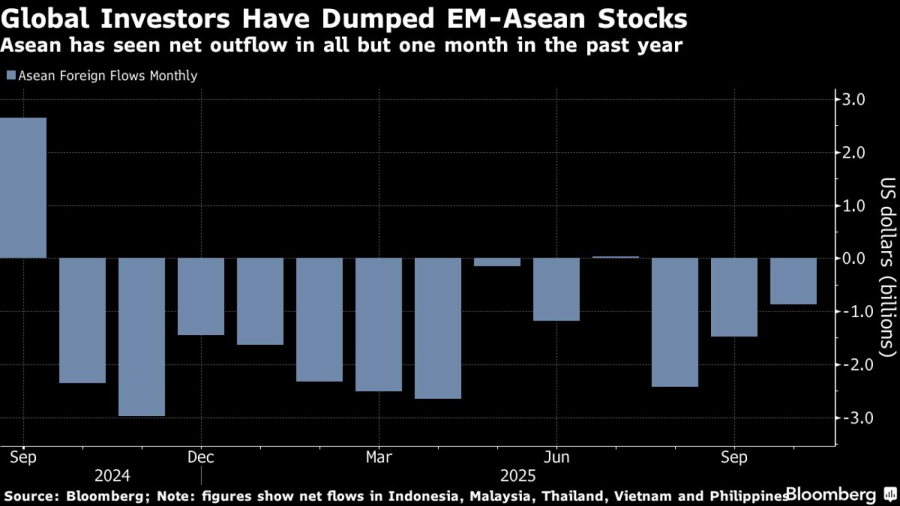 Akcije u jugoistočnoj Aziji spremne su za oporavak nakon što su globalni investitori ovog mjeseca povukli gotovo 900 miliona dolara iz tržišta u razvoju u tom dijelu svijeta, produžavajući trend odliva kapitala koji traje već 12 mjeseci, pokazali su Bloombergovi podaci. Kapital se uglavnom preusmjerava ka tržištima bogatim tehnološkim dionicama poput Tajvana, Južne Koreje i Kine, gdje su indeksi snažno porasli. MSCI indeks akcija jugoistočne Azije ove je godine porastao za 10 posto, ali i dalje znatno zaostaje za širim indeksom tržišta u razvoju, koji je ostvario rast od 29 posto najveći jaz još od 2020.