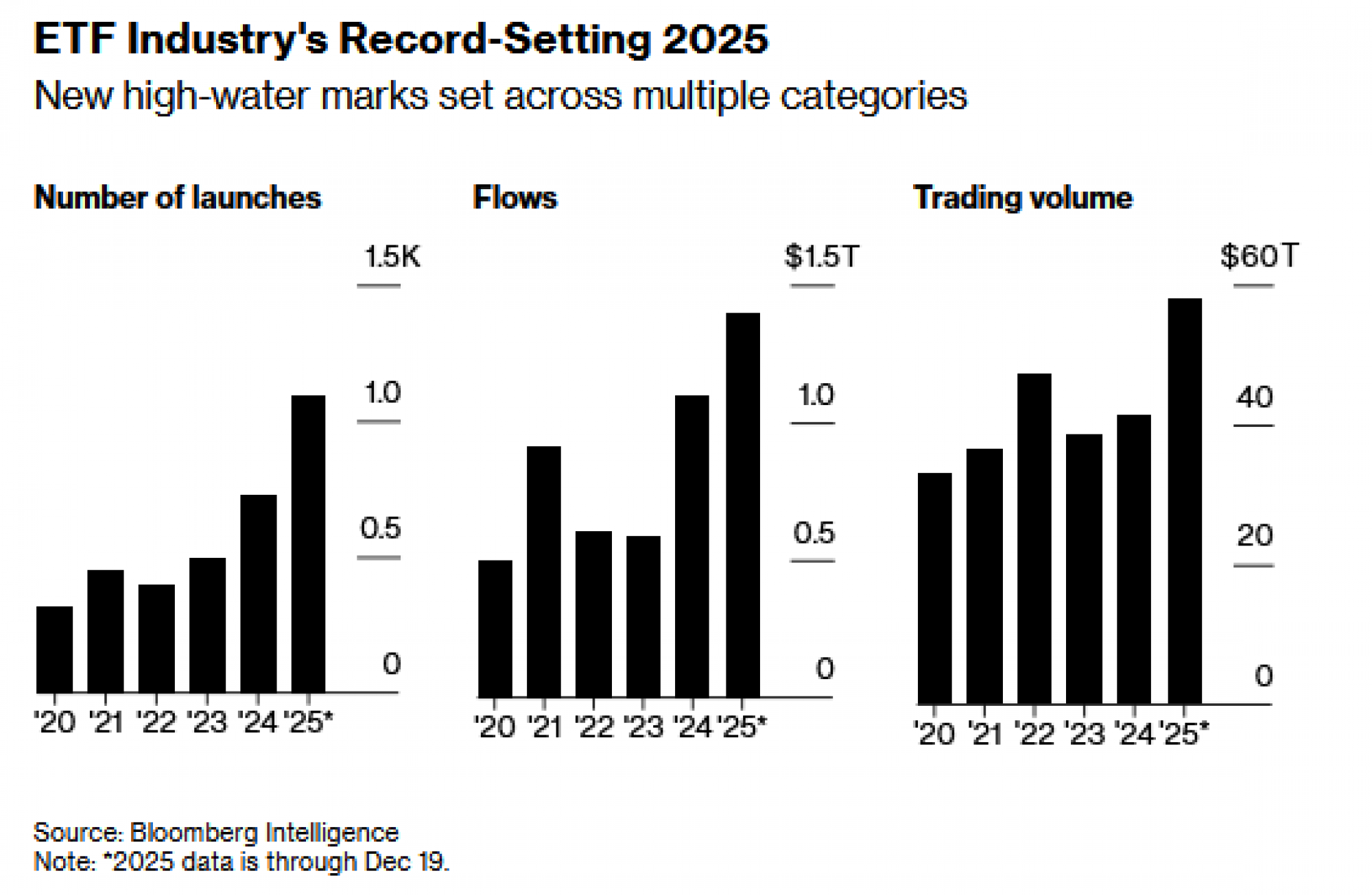Manje od dvije sedmice do kraja godine, 2025. godina trebala bi biti rekordna za američku industriju ETF-ova vrijednu 13 biliona dolara: novi vrhunci u protoku, lansiranjima i obimu trgovanja. Raspravlja se hoće li sljedećih nekoliko godina biti tako ljubazne.