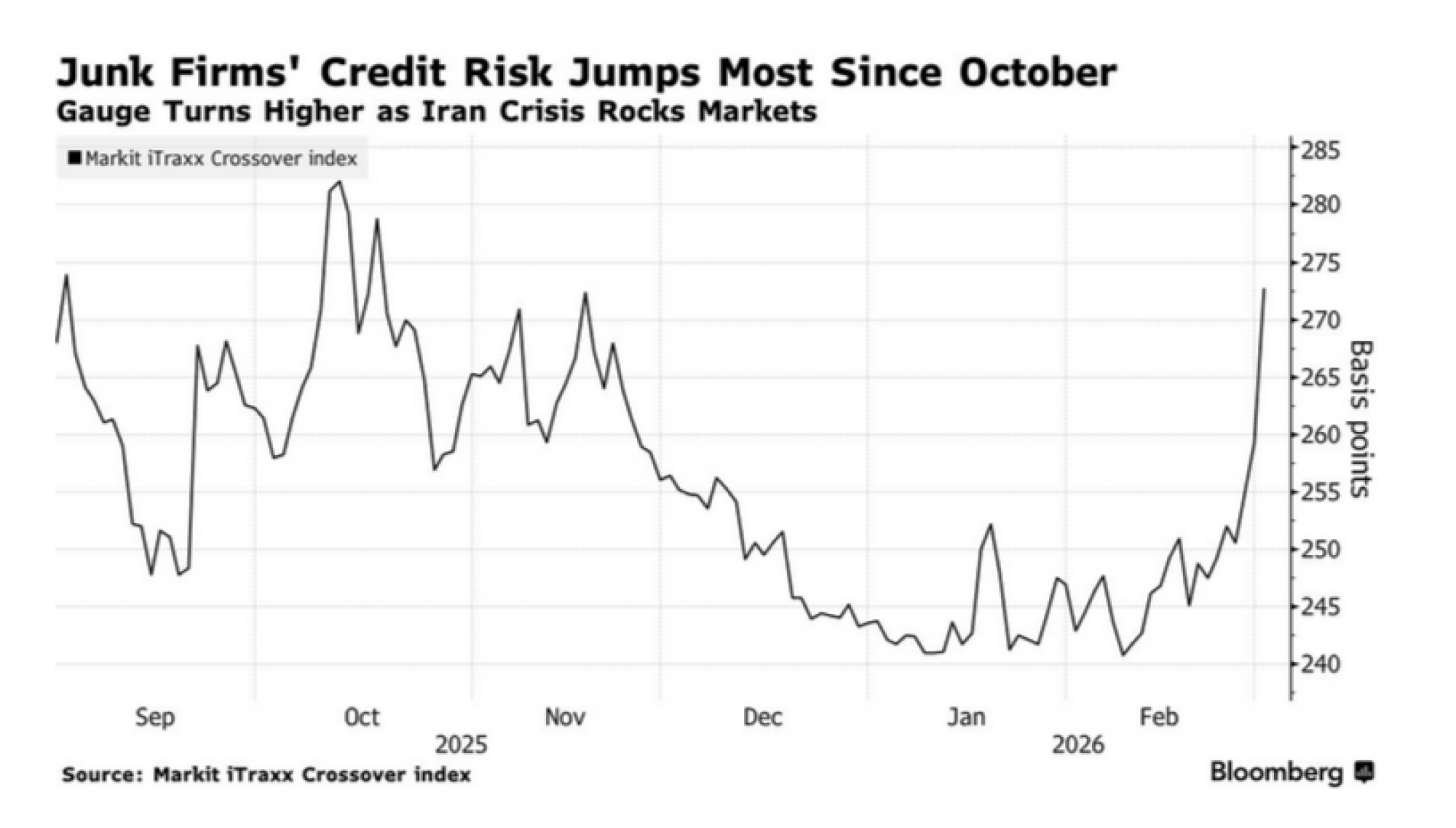 Situacija se od tada brzo promijenila izbijanjem rata između SAD-a i Irana tijekom vikenda i naknadnom eskalacijom diljem Bliskog istoka. Pokazatelji kreditnog rizika europskih tvrtki zabilježili su najveći skok od listopada, dok su globalne dionice potonule, a cijene nafte porasle. Prema Bloombergovom indeksu, kreditni rasponi duga visokog rejtinga u Aziji proširili su se za oko četiri bazna boda, što je skoro najveći porast u proteklih sedam mjeseci.