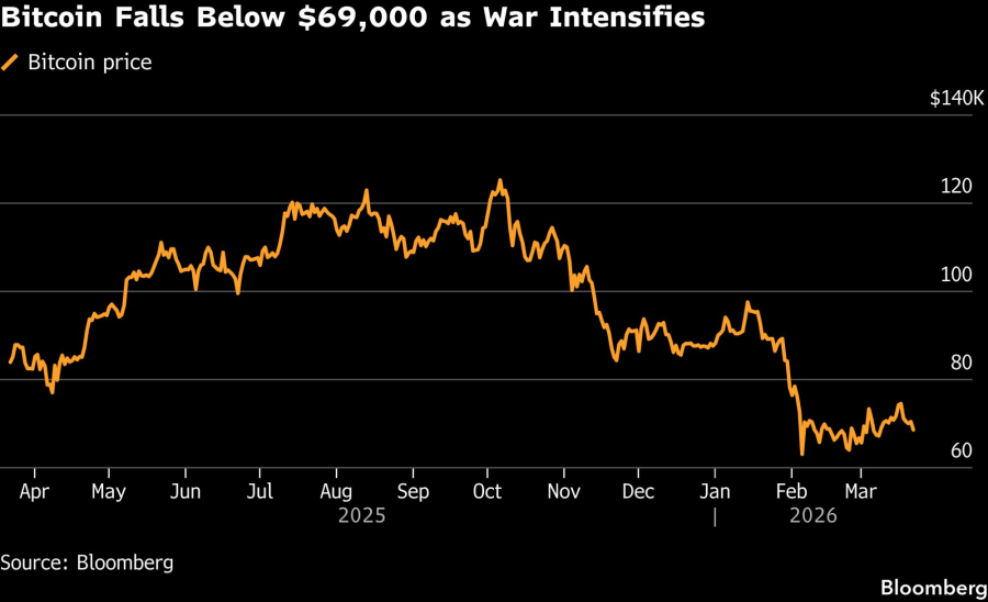 Bitcoin pao ispod 69.000 dolara kako se rat intenzivira