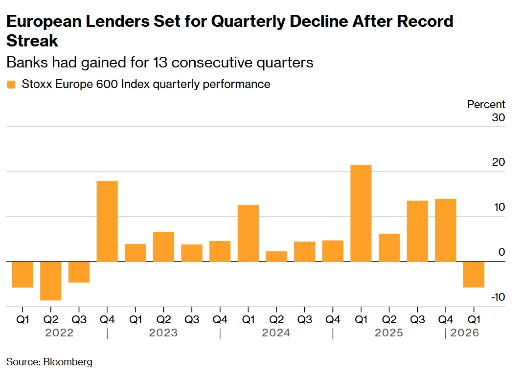 Dionice europskih banaka na putu su da prekinu rekordni niz od 13 uzastopnih profitabilnih tromjesečja jer su optimizam oko snažne zarade i povrata kapitala istisnuli zabrinutost zbog utjecaja rata s Iranom i egzodus s tržišta privatnih kredita.