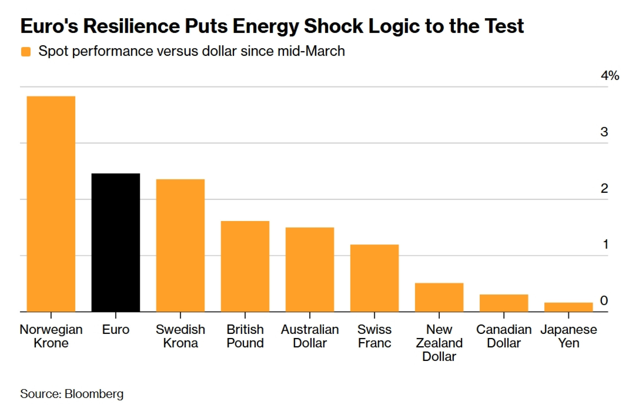 Euro je druga najuspješnija valuta G-10 u odnosu na dolar tijekom proteklog mjeseca, prkoseći očekivanjima da će energetski šok uzrokovan ratom na Bliskom istoku pogoditi europsko gospodarstvo i povući valutu naniže.