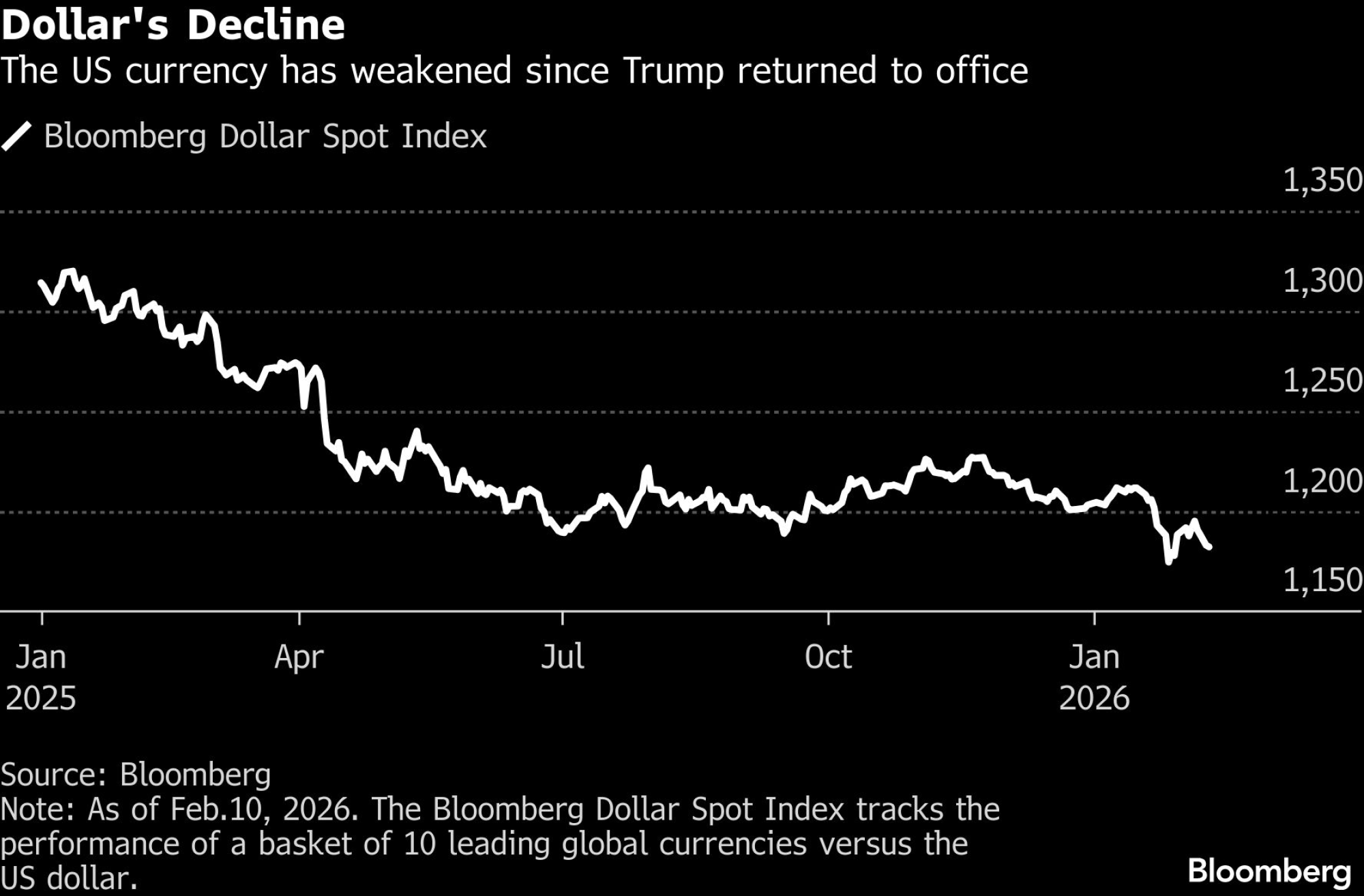 Posljednjih dana predsjednik je djelovao kao da potpuno prihvata slabiji dolar. Na pitanje 27. januara brine li ga nedavni pad dolara, Trump je novinarima rekao: "Ne, mislim da je to sjajno". Njegove izjave učvrstile su očekivanja da bi valuta mogla dodatno oslabiti.