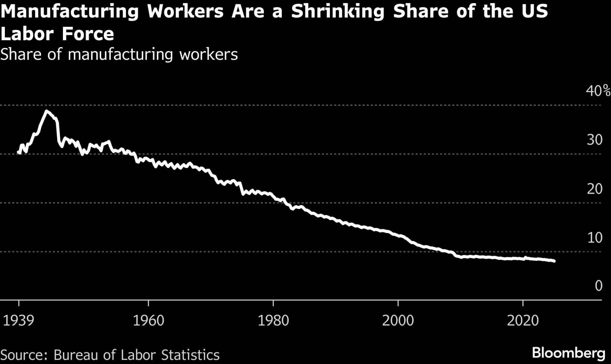 Radnici u proizvodnji čine sve manji udio u radnoj snazi SAD-a | Bloomberg