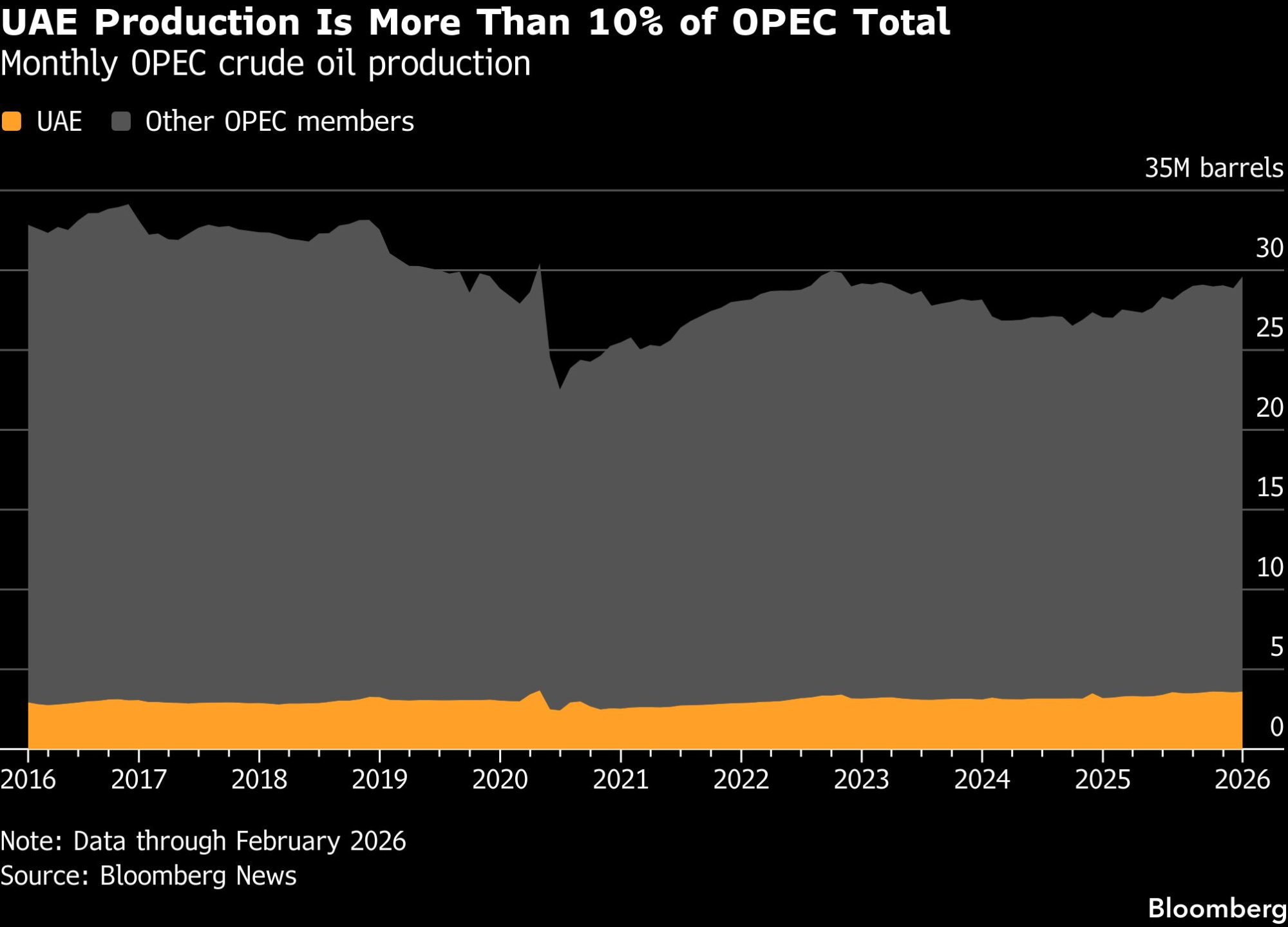 Ipak, iako je Abu Dabi brzo povećavao kapacitete i ima ambicije da dodatno podigne proizvodnju, nije jasno koliko još prostora ima za rast. Procjene proizvodnje UAE značajno se razlikuju, ali mnogi analitičari i trgovci vjeruju da je zemlja i prije rata proizvodila blizu maksimuma. U februaru je proizvodnja iznosila 3,64 miliona barela dnevno, znatno iznad zvaničnih podataka, prema podacima Međunarodne agencije za energiju. Nekoliko trgovaca smatra da je stvarni broj bila još viša.