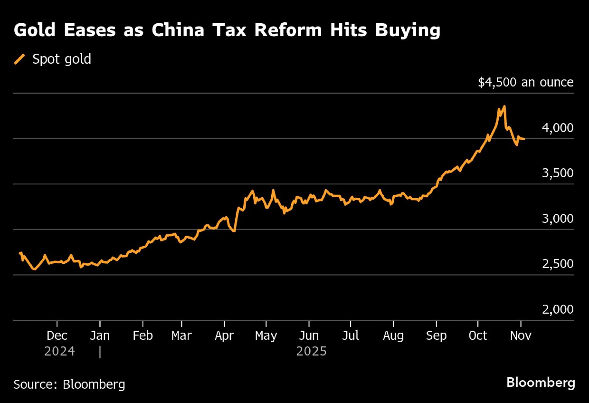 Cijena zlata zadržala se na oko 4.000 dolara po unci nakon što je Kina ukinula dugogodišnji povrat poreza za neke maloprodajne trgovce. Ta promjena mogla bi utjecati na potražnju na jednom od najvećih svjetskih tržišta plemenitih metala.