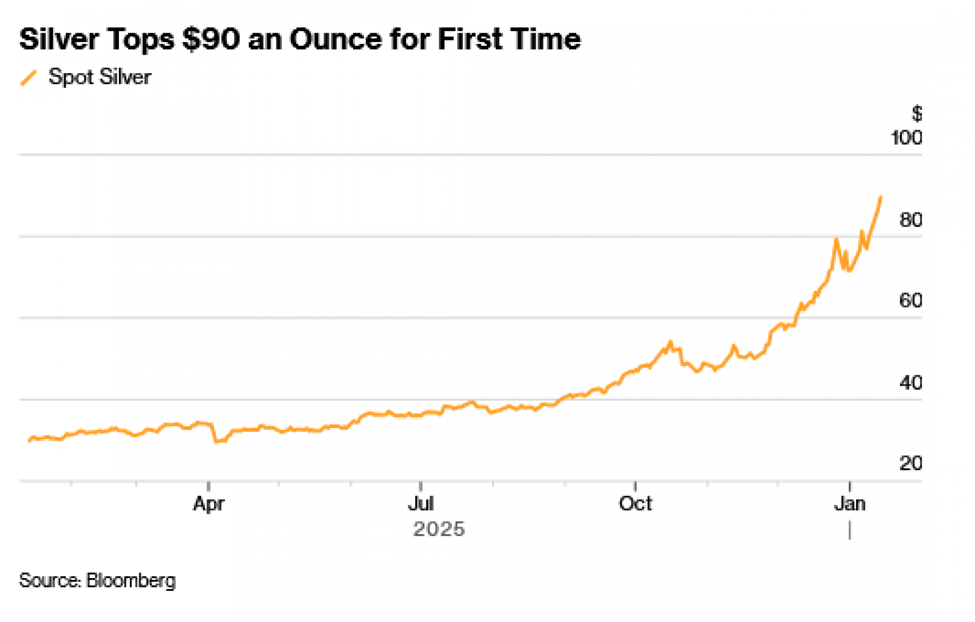 Bijeli metal skočio je za čak 5,3 posto i dosegnuo 91,5535 dolara po unci, dok je zlato bilo unutar 10 dolara od rekordne vrijednosti. Temeljna inflacija u SAD-u u prosincu nije bila toliko visoka koliko se strahovalo, ali ekonomisti su rekli da su podaci umjetno smanjeni rekordno dugom obustavom rada vlade. Očekuje se da će Fed pauzirati smanjenje kamatnih stopa na nekoliko mjeseci, ali tržišta swapova predviđaju barem još dva smanjenja kasnije tijekom godine.