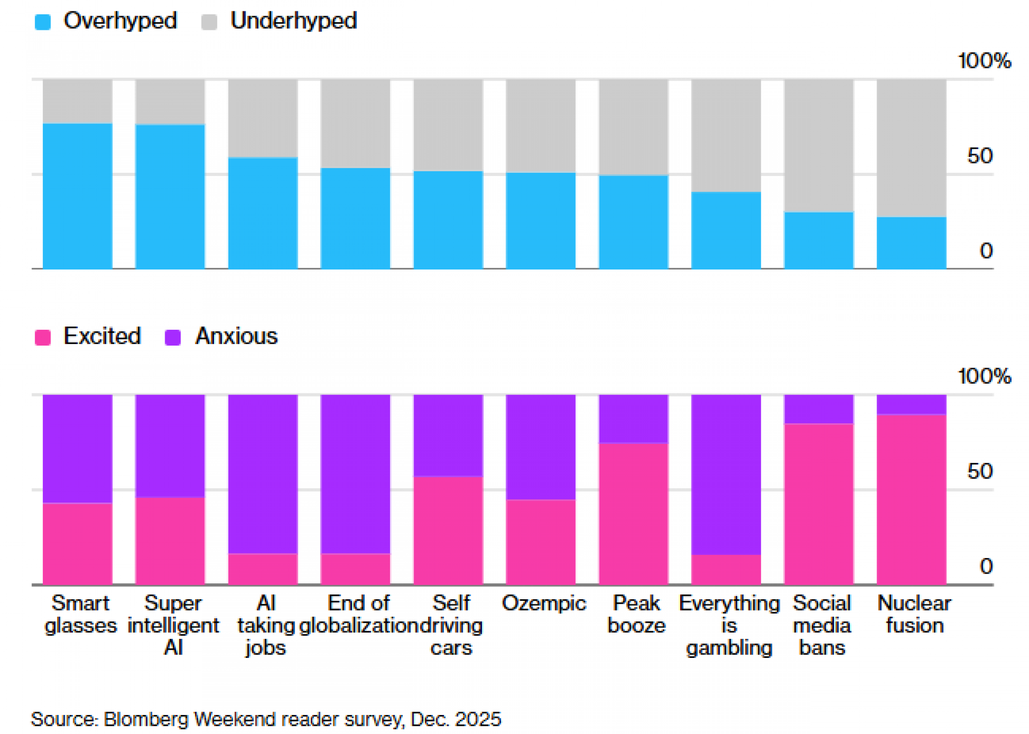 Samovozeći automobili i "ozempic" nalaze se u sredini po obje dimenzije - možda zato što su polarizujući, a možda zato što su jednostavno primjereno "nahajpovani" i sa pomješanim efektima.